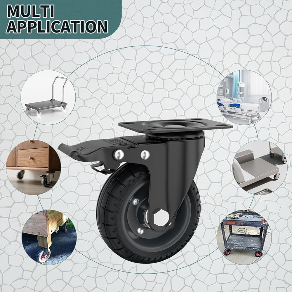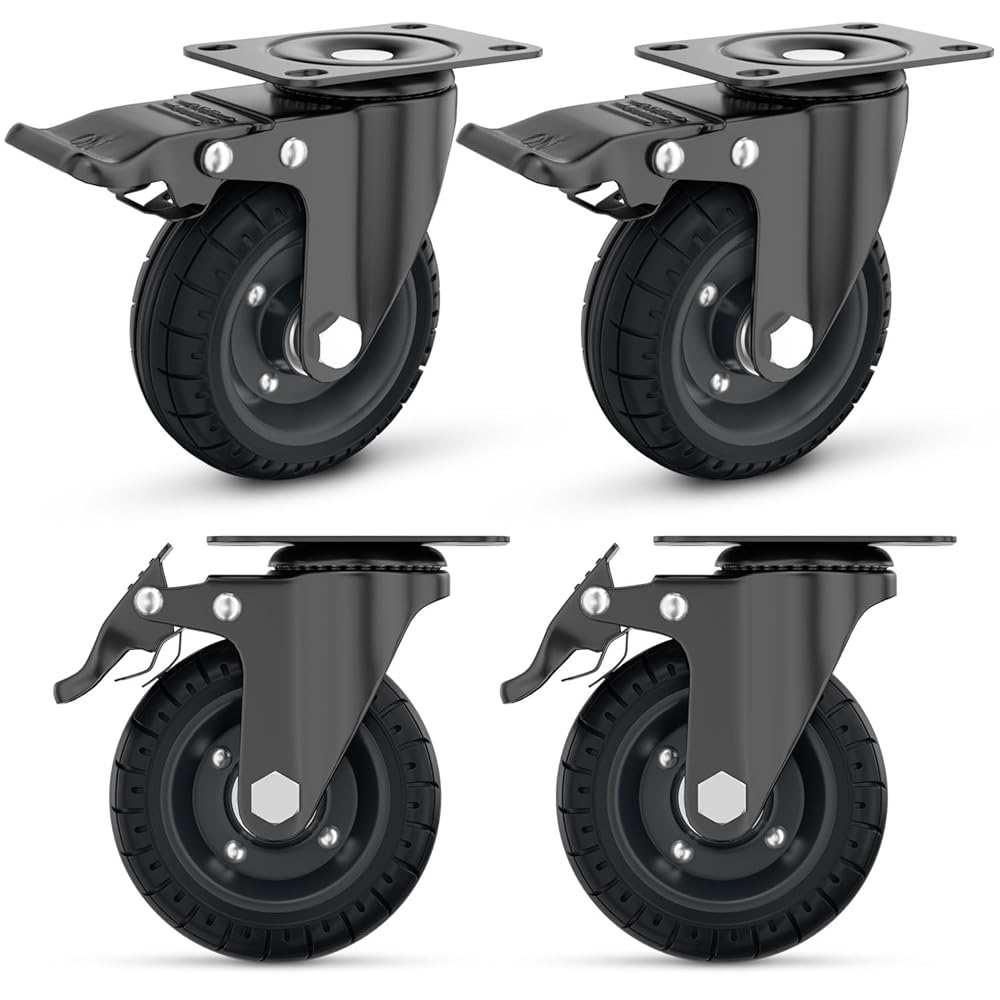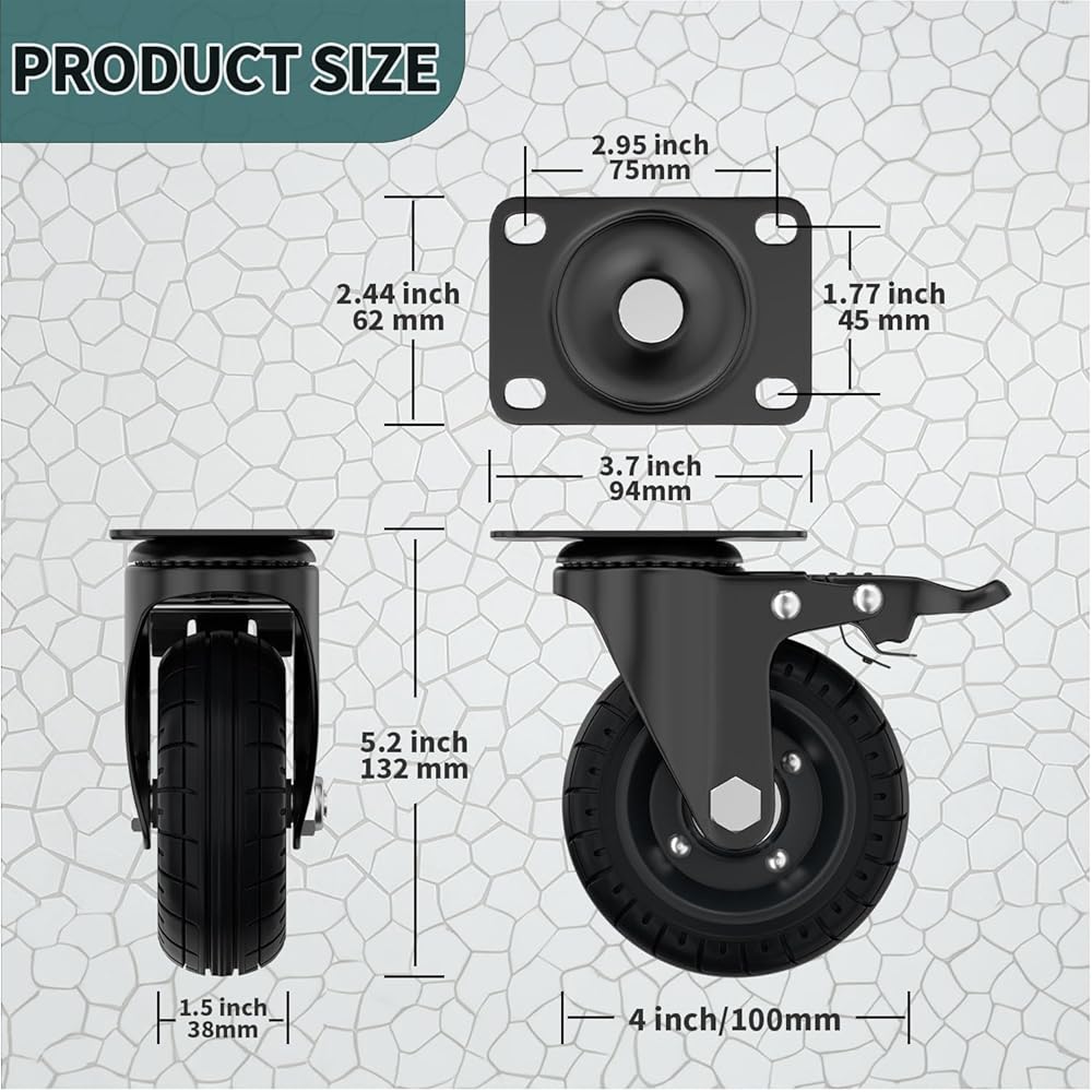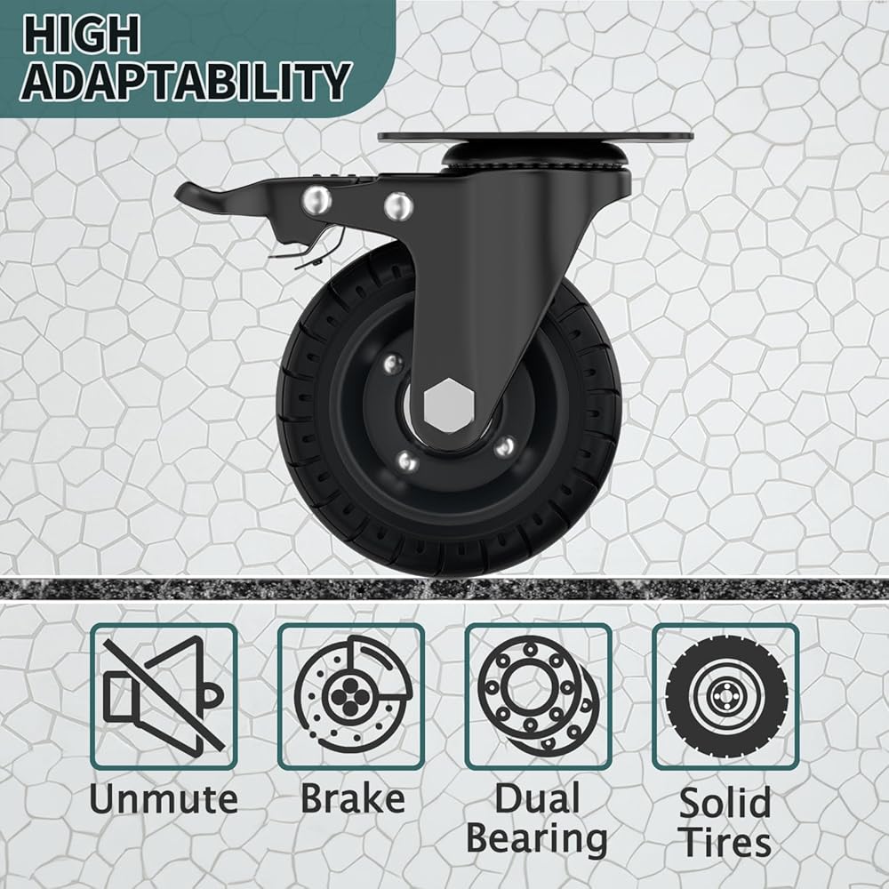 عجلات مربع دوارة 4 بوصة مع فرامل مزدوجة ، ما يصل إلى 1000 رطل ، مجموعة من 4 ، المطاط الصلب ، حافة الحديد الزهر ، عجلات صفيحة ، في الهواء الطلق ، مجانية مسطحة للعربات ، دوللي ، طاولة عمل ، عربة ، DIY