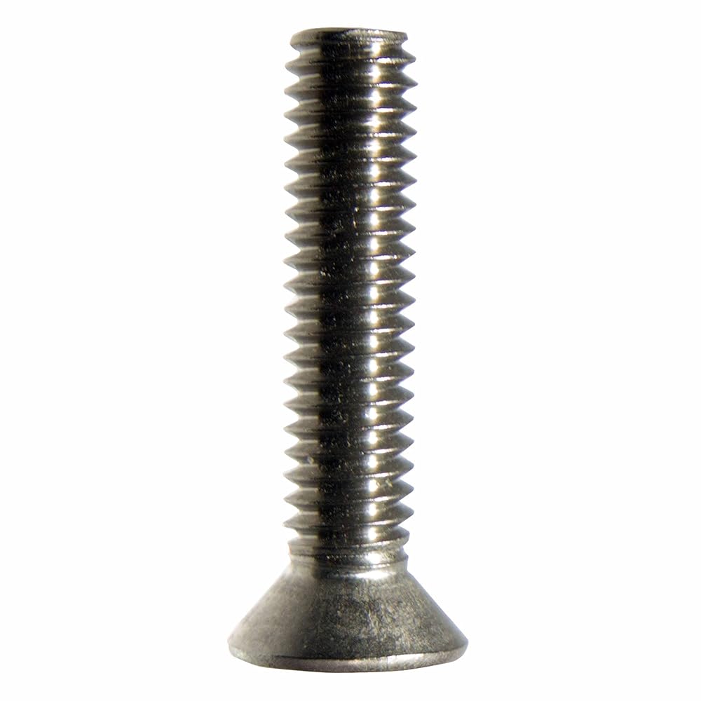 Machine screws are often used with nuts but also often driven into tapped holes (without nuts). They might be considered a screw or a bolt based on the Machinery's Handbook distinction. In practice, they tend to be mostly available in smaller sizes and the smaller sizes are referred to as screws or less ambiguously as machine screws, although some kinds of machine screw can be referred to as stove bolts. A flat head is A head with flat top and a conical bearing surface (bottom). Designed to be Countersunk. Rod with spiral threads the entire length and with one flat end and a head on other end. Holds object to another object that has a pre-threaded hole, frequently a nut. Usually manufactured from metal. Can be rotated into or out of the object using a screwdriver or wrench.