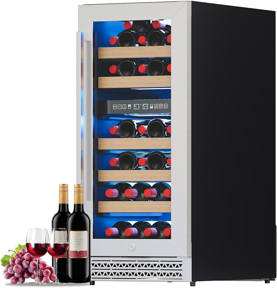 ثلاجة نبيذ Albott مقاس 15 بوصة، مبرد نبيذ مزدوج المنطقة 31 زجاجة 41-68 درجة فهرنهايت مع تحكم رقمي في درجة الحرارة، باب زجاجي مزدوج الطبقة قابل للعكس، تصميم مدمج أو قائم بذاته للمنزل والبار