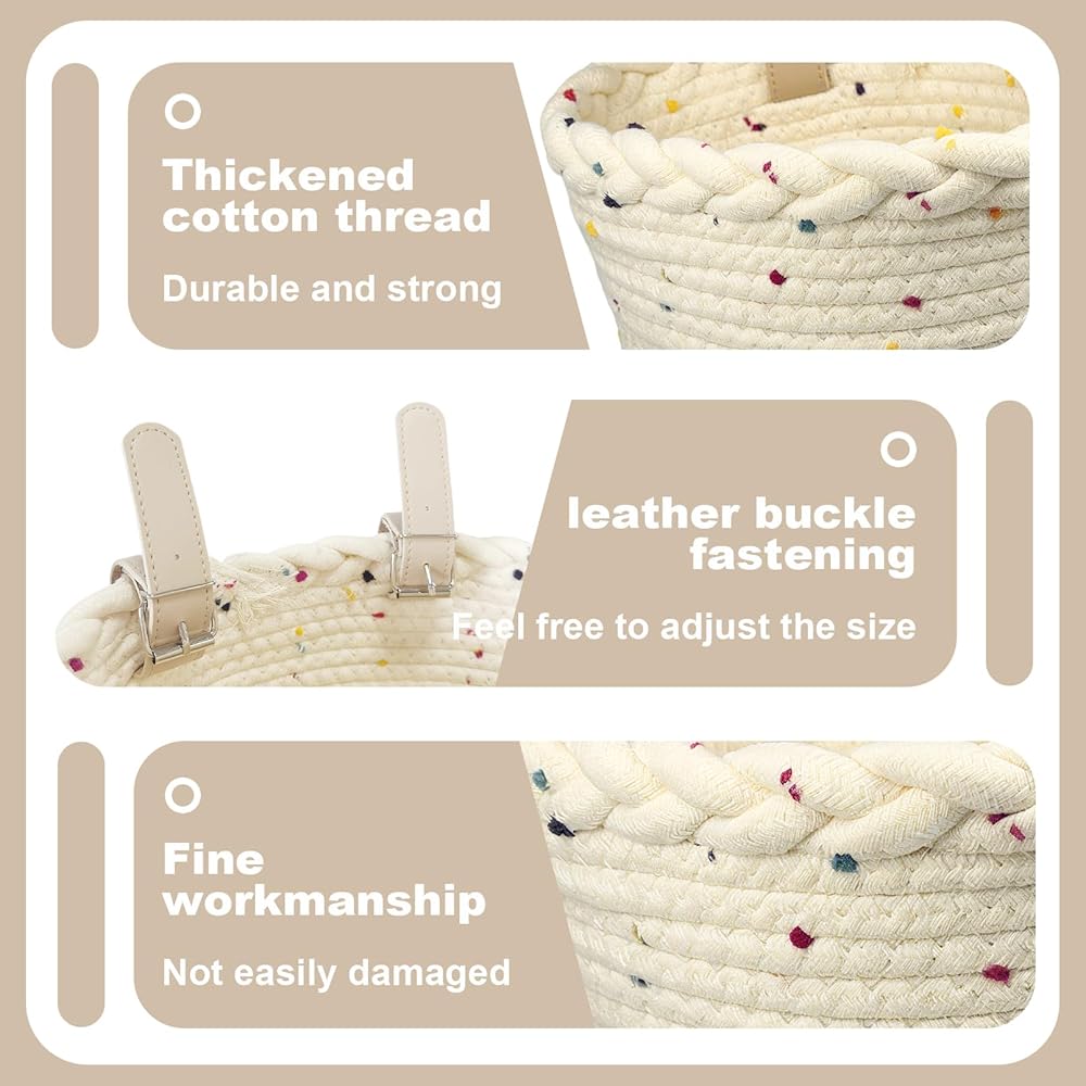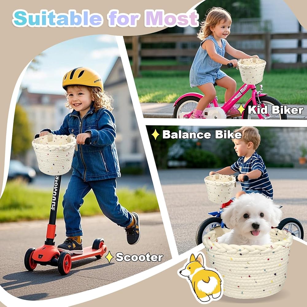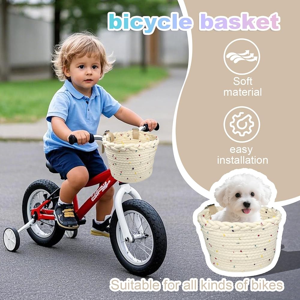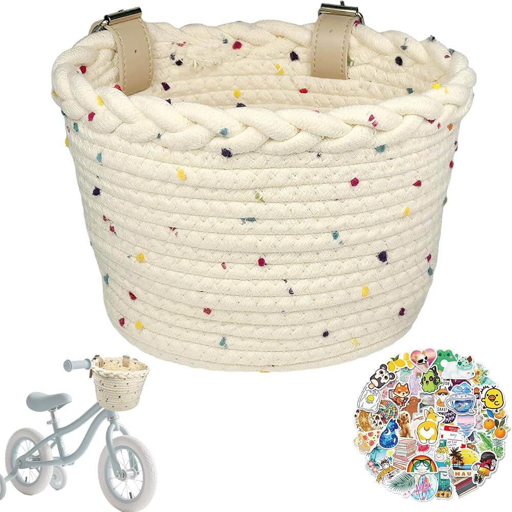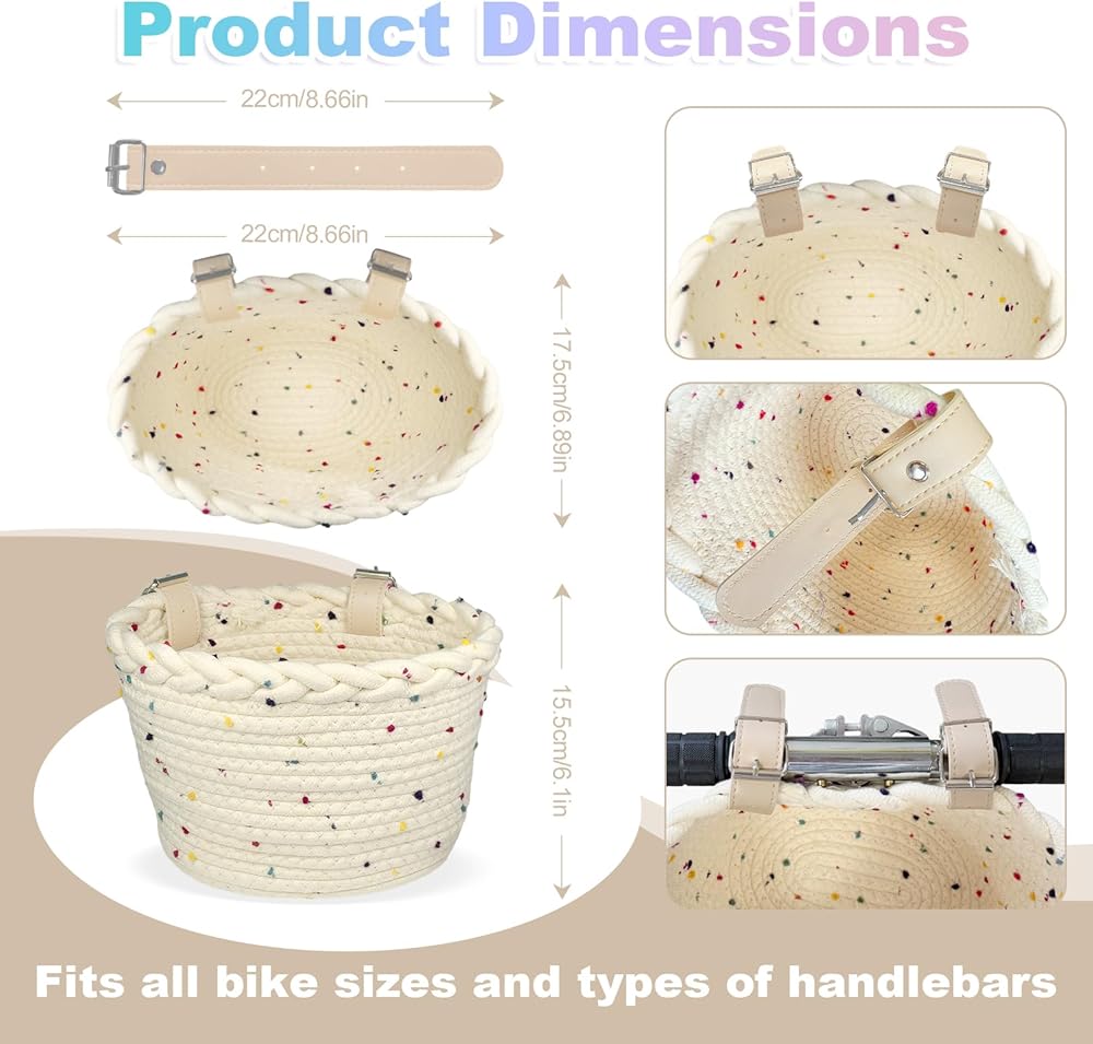 • 【يتم خياطة سلة الدراجة الملونة والنية للأطفال بحبل ألياف البوليستر عالي الجودة ، ناعمة ومقاومة للارتداء ، سهلة التنظيف. هناك العديد من ألوان سلال الدراجات للأطفال للاختيار من بينها ، سلال الدراجة الدراجات البخارية مع POM-POMs ذات ألوان قوس قزح هي لطيفة!