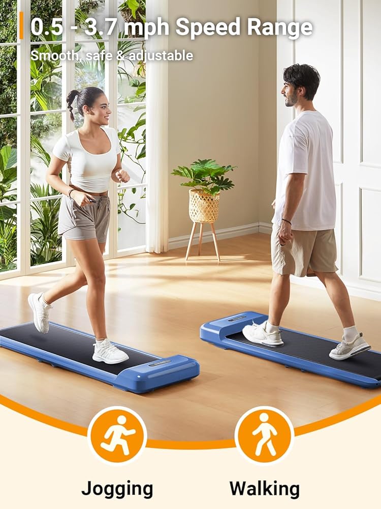 LED Display & Remote Control - You can set the speed of the Walking Pad C2 from 0.5 mph to 3.7 mph, making it an ideal under desk treadmill. The speed can be adjusted using either the remote control or the app. The walking pad also features an easy-to-read LED display that informs you about your steps, training time, speed, calories burned, and distance covered in real-time.