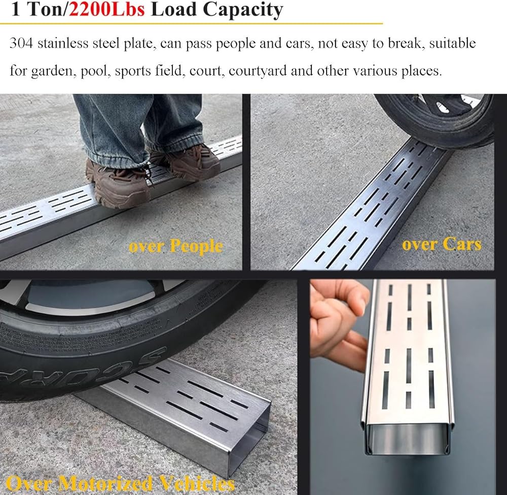The compact channel drain kit is an excellent solution for efficiently managing low water flow in both indoor and outdoor drainage areas. Designed to enhance your home's drainage system, this kit not only ensures effective water removal but also adds an aesthetic element to your yard, making it perfect for any outdoor setting. **Specifications:** - **Material:** 304 stainless steel - **Length:** 100cm / 39.4 inches / 3.3 feet - **Available Sizes:** 3x3cm, 3.5x3cm, 4x4cm, 5x3cm, 5x5cm, 6x4cm, 7x3cm, 7x5cm, 8x4cm, 8x5cm, 8x6cm, 10x3cm, 10x4cm, 10x5cm, 10x6cm, 15x4cm, 15x5cm, 15x6cm, 15x8cm **Features:** - Thoughtfully designed with a dense opening to enhance water flow. - Easily disassembled for hassle-free cleaning. - Crafted from high-quality stainless steel for long-lasting durability. - Flat surface design ensures smooth passage for wheelchairs and other mobility aids. - Prevents leaves and debris build-up, keeping your drain pipe clear. - Quick and straightforward installation; it can be cut or assembled as needed. - Ideal for use in commercial kitchens and supermarket food areas. - Serves as an attractive exterior decor option for patios and outdoor spaces. - Effectively addresses drainage challenges during heavy rains and seasonal thaws. **Package Includes:** 1 x drainage trench **Notice:** Please allow for a 1-3cm error in measurements due to manual measurement. Color variations may occur between the recording light and display; kindly refer to the actual product for accuracy. Upgrade your drainage system today with this reliable and stylish channel drain kit, perfect for enhancing functionality and aesthetics in any area of your home!