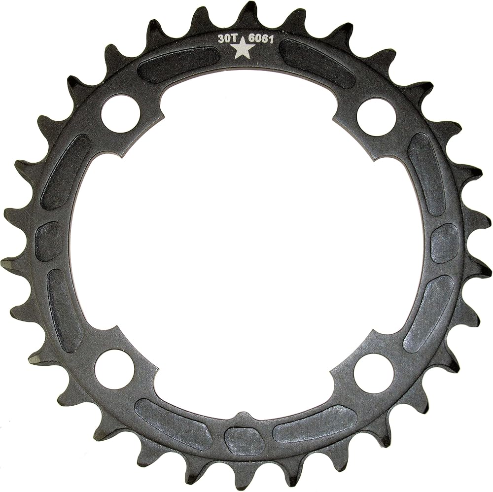 USAmade Sharktooth Narrow Wide 94mm BCD Mountain chainring, Black Anodized Finish with Teflon coated surface treatment, 4-Bolt, threaded for a standard M8x0.75 chainring bolt- recommend 8 mm bolts, aircraft aluminum alloy, Alternating "Thick-Thin" tooth profile for chain retention- the latest technology, Sharktooth Series - No Chain Drop tooth profile for all conditions chain retention, Greater built-in offset for chain clearance on most popular cranks, Designed to use 3/32", 8,9,10 and 11-speed chains. - Made in the U.S.A.