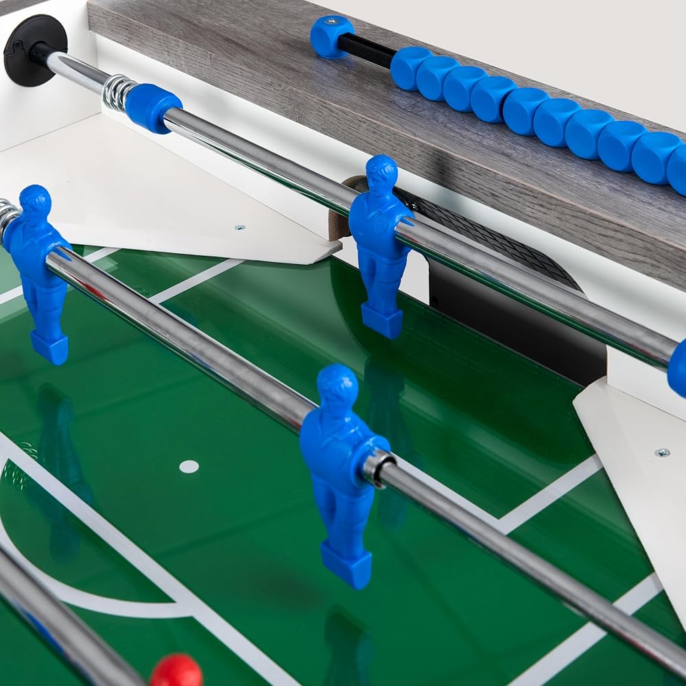 The Garlando G-500 GREY Indoor Foosball Table has excellent stability and outstanding playability characteristics, while also boasting a stylish, ultramodern design. The 1-inch thick MDF cabinet has melamine laminate providing a clean, elegant look as well as protection against scratches and dings. Heavy-duty 4" x 4" steel legs provide impressive stability and have a powder-coated finish that is highly scratch resistant. Steel ball bearings ensure smooth action and greatly improve the game speed while reducing stress on the player's wrists. The G-500 GREY is proudly made in Italy and includes 10 white resin balls.