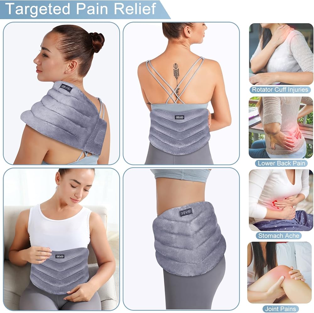 • حزمة حرارية طويلة الأمد وغطاء يمكن ارتداؤه: هذا الغلاف الذي يتم تسخينه بالميكروويف مملوء ببذور الكتان وخرز الطين والذرة الرفيعة والدخن، والتي تحتفظ بالحرارة والرطوبة لفترة أطول لمزيد من الاسترخاء. يتميز الغطاء بشكل فريد على شكل حرف V، مما يحافظ على الخلطات في مكانها، عصري وعملي. نسيج مينكي الناعم صديق للبشرة ومتين بما يكفي لتحمل الاستخدام المتكرر. تبلغ مساحة المنطقة الحرارية 12.7 سم × 40.64 سم، مع حزام تمديد متضمن يناسب جميع احتياجات عائلتك.