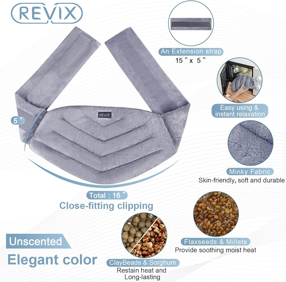 وسادة تسخين قابلة للاستخدام في الميكروويف من ريفيكس لتخفيف الألم، حزمة كبيرة جدًا لتسخين الميكروويف مع حرارة رطبة للخصر والمعدة والكتف، حزمة ساخنة أو باردة غير معطرة، رمادي
