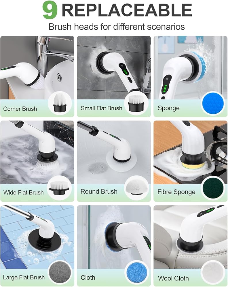جهاز تناسق دش: يتضمن جهاز غسيل واحد ، وخيارات متعددة ، 8 فرش قابلة للفصل ، وفرشاة مستديرة للسطح المنحني مثل حوض الاستحمام والمرحاض ؛ فرشاة مسطحة لأرضيات البلاط والكشفات ؛ فرشاة الزاوية للفجوات الزاوية. Sponge Brush for Windows ... طرق استخدام أكثر في انتظار استكشافك! [تحذير: فقط استخدم شاحن 5V! الجهد العالي قد لا يشحن]