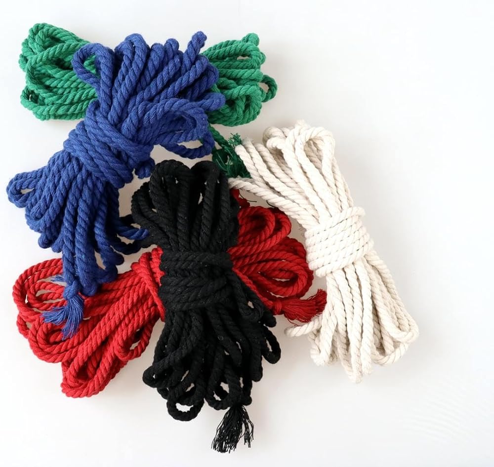 Our Ultra-Soft Multipurpose Cotton Rope is skillfully handcrafted from 100% premium natural cotton to create a smooth, gentle feel. Each strand measures 13 feet (4 meters) in length and 0.24 inches (6 millimeters) in thickness, providing just the right balance of flexibility and sturdiness. The rope's three-strand, Z-twisted construction lends it reliable strength, while the overhand knotted ends help prevent fraying and maintain its shape over time. To enhance its naturally soft texture, every rope undergoes a careful oil finishing process, ensuring a soothing touch that remains comfortable even during extended use. This skin-friendly design makes it ideal for projects where close contact is essential, and the breathable cotton fibers further contribute to its gentle feel. The rope is available in a variety of vibrant colors, allowing you to add a personal touch to your creations. Whether you're working on intricate knot patterns, decorative accents, or functional tasks that require a dependable yet comfortable rope, this handcrafted cotton cord delivers a blend of durability, versatility, and style. Designed to be both practical and visually appealing, it invites you to explore a world of crafting possibilities without compromising on quality or comfort.