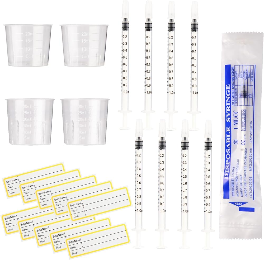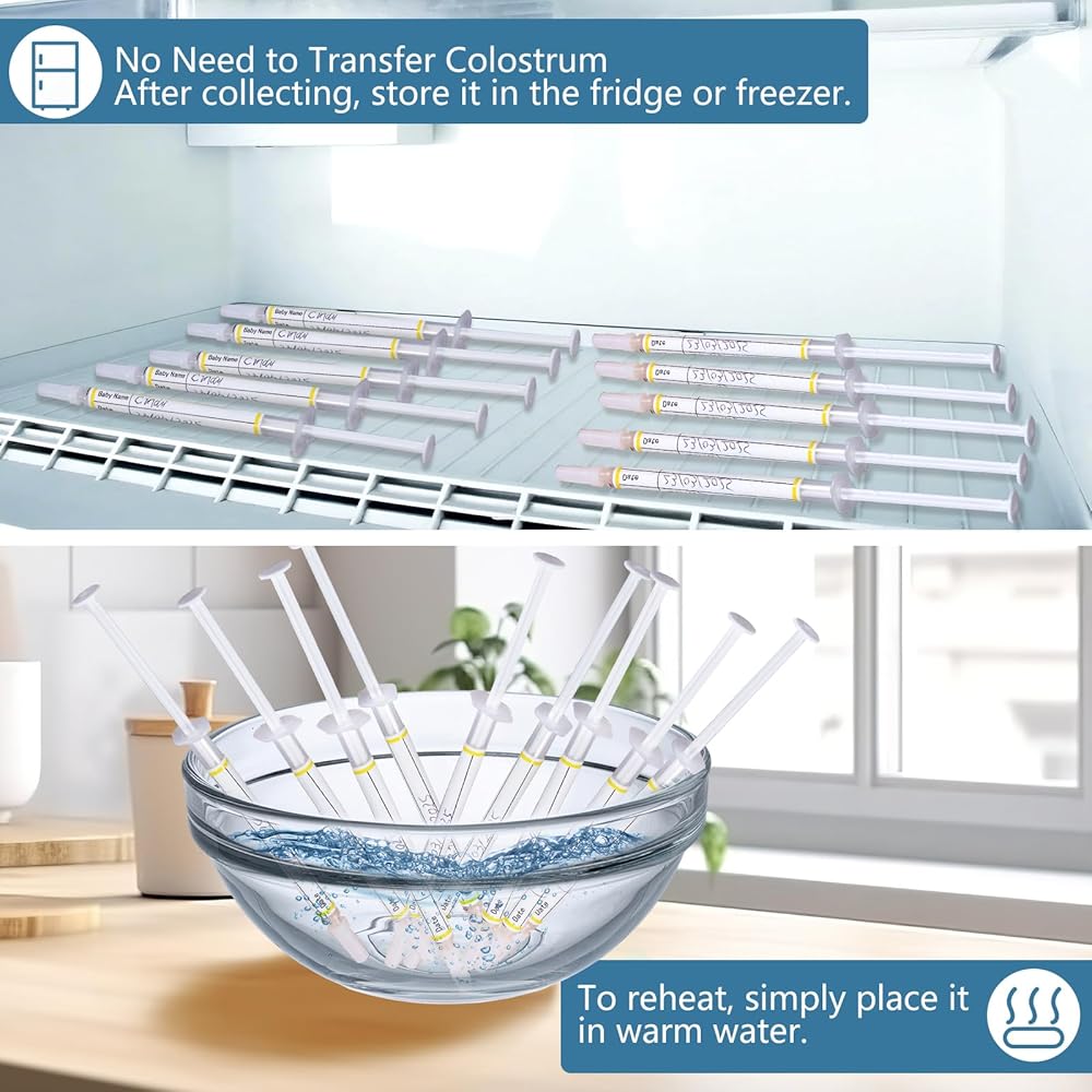 • مجموعة Colostrum Collection: 50 × 1 مل من المحاقن ، 2 × 20 مل من أكواب القياس ، 2 × 30 مل من أكواب القياس ، و 50 ملصقات لاصقة لجمع العينات المنظمة وتخزينها.