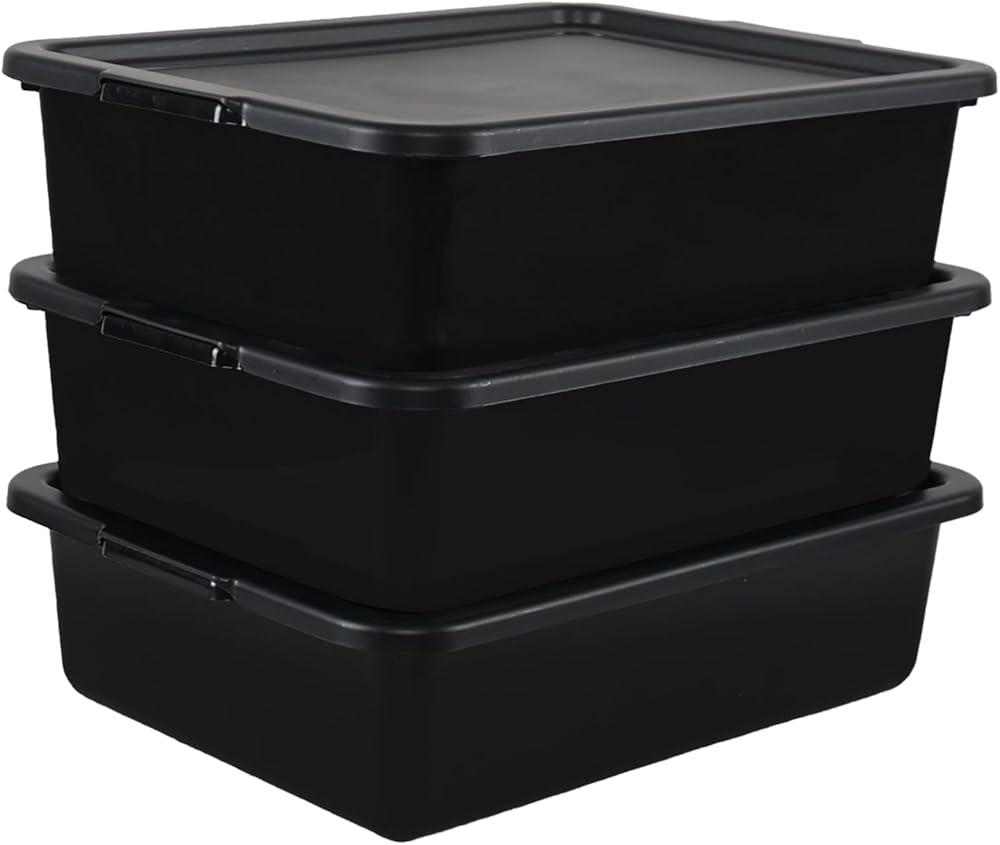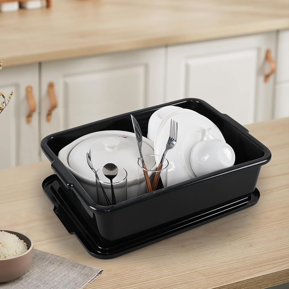 حوض حافلة بحافلة تجاري بلاستيكي 13 لتر مع غطاء ، حافلات صحن مطعم 3 عبوات ، أسود