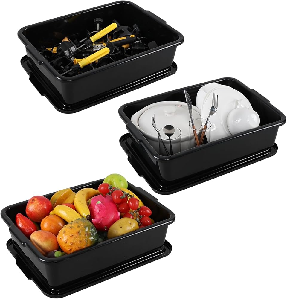 - These plastic bus box with lid are ideal for storing vegetables, tableware, frozen beverages, and organizing shelves