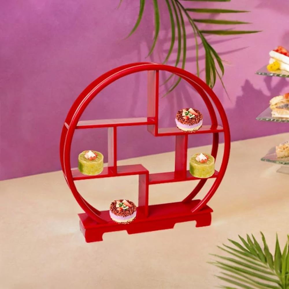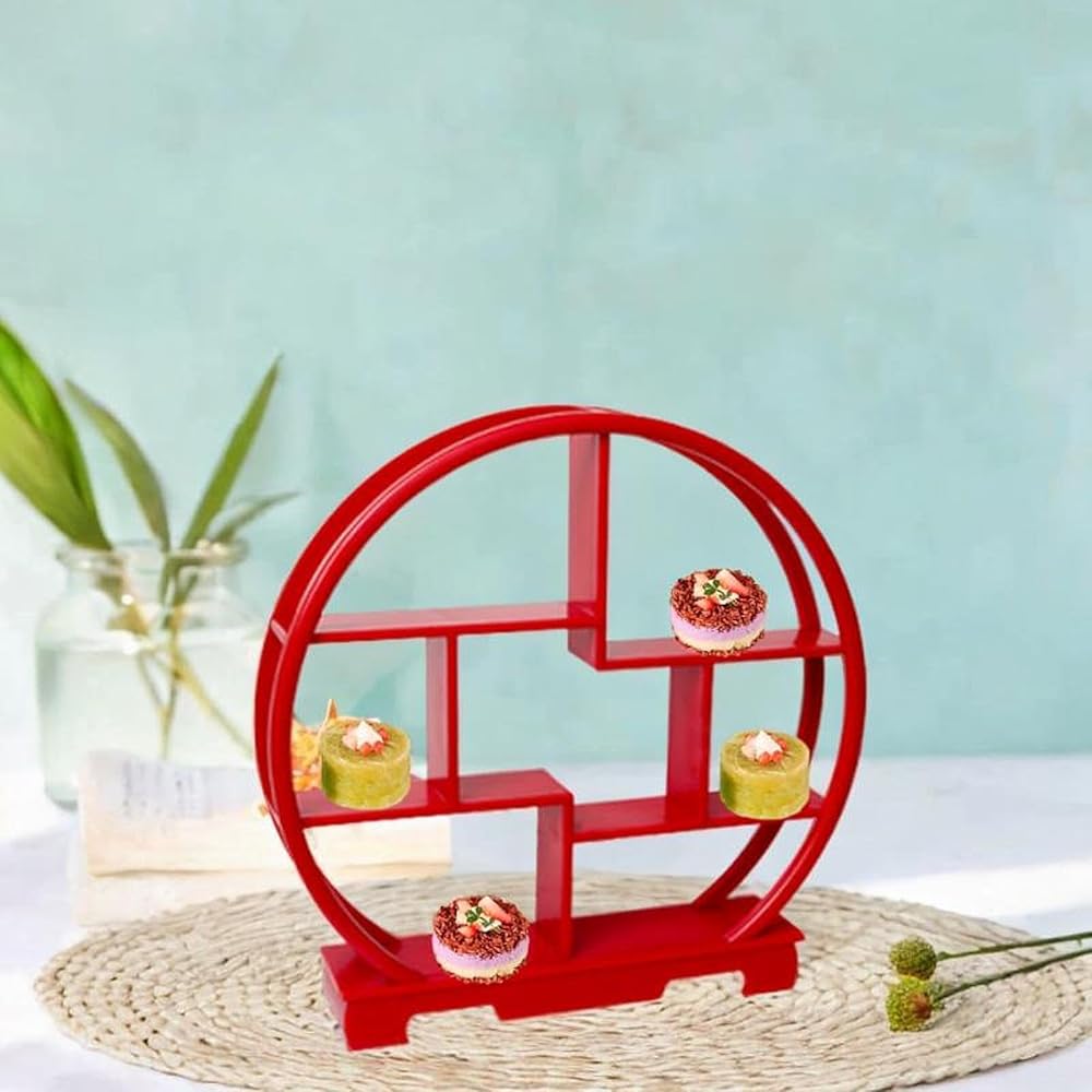 【Material】: Made from wood, this chinese wooden display stand is sturdy, ensuring it can hold a variety of treats securely