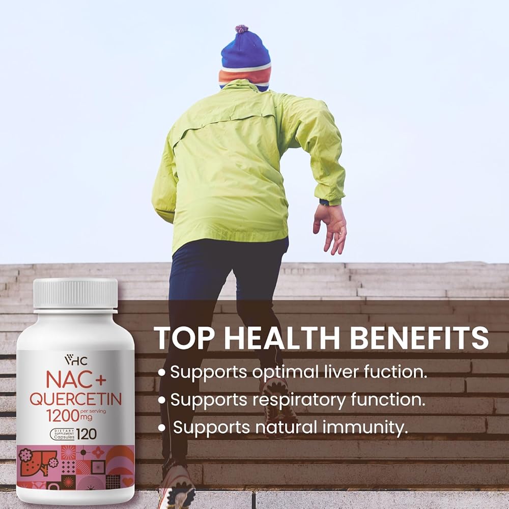 مكمل VHC NAC (N-Acetyl Cysteine) 1200 مجم بالإضافة إلى كيرسيتين، الجرعة المثالية (1200 مجم + 100 مجم)، 2 في 1 تركيبة مزدوجة المفعول N-Acetyl-L-Cysteine مع كيرسيتين، للجهاز التنفسي والكبد والمناعة، صنع في الولايات المتحدة الأمريكية