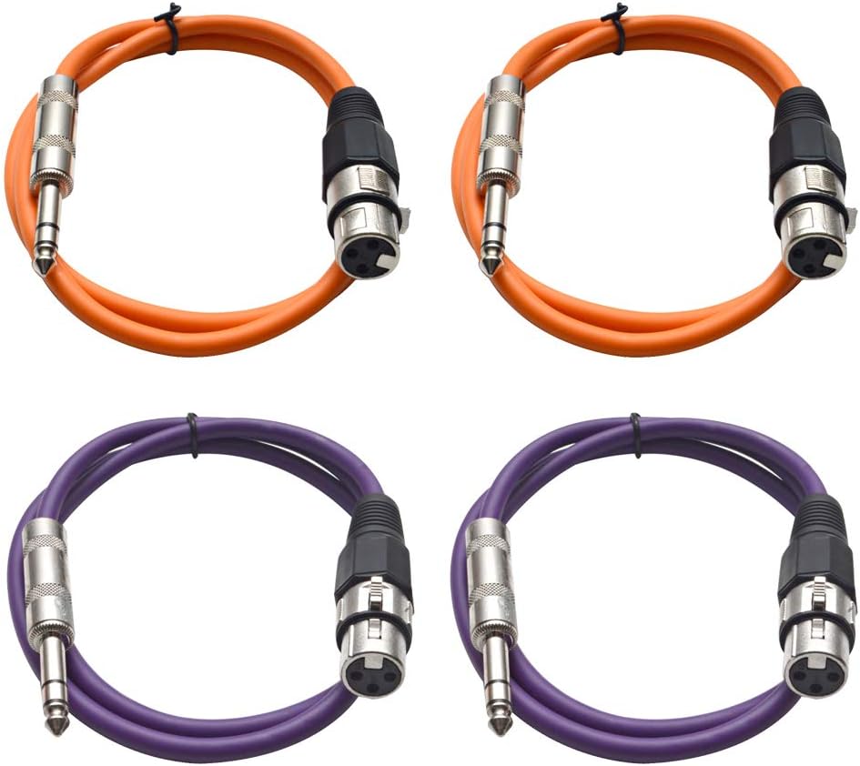 4 Pack of 3 Foot 1/4" TRS to XLR Female Patch Cables (Pick Your Colors) Model Number: SATRXL-F3 Various Colorsr 1/4 Inch TRS to 3 Pin XLR Female Connectors Heavy Duty Flexible Rubber Jacket Length: 3 Feet for each cable Shielded Cables These cables are brand new. One year warrantyBalanced XLR to 1/4" cables are ideal for connecting mixers, equalizers, crossovers, amplifiers.Some mixers or rack mount gear have XLR connections where others have 1/4". These are ideal for adapting the two together. 22g Oxygen-Free Copper (OFC) conductors for enhanced signal clarity and superior RF rejection.