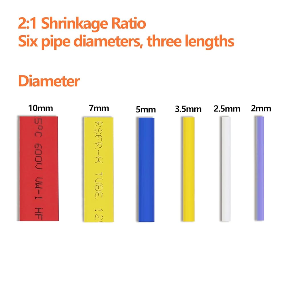 Supplied internal diameter: 2mm(5/64''), 2.5mm(3/32''), 3.5mm(9/64''), 5mm(3/16''), 7mm(9/32''),10mm(13/32'')