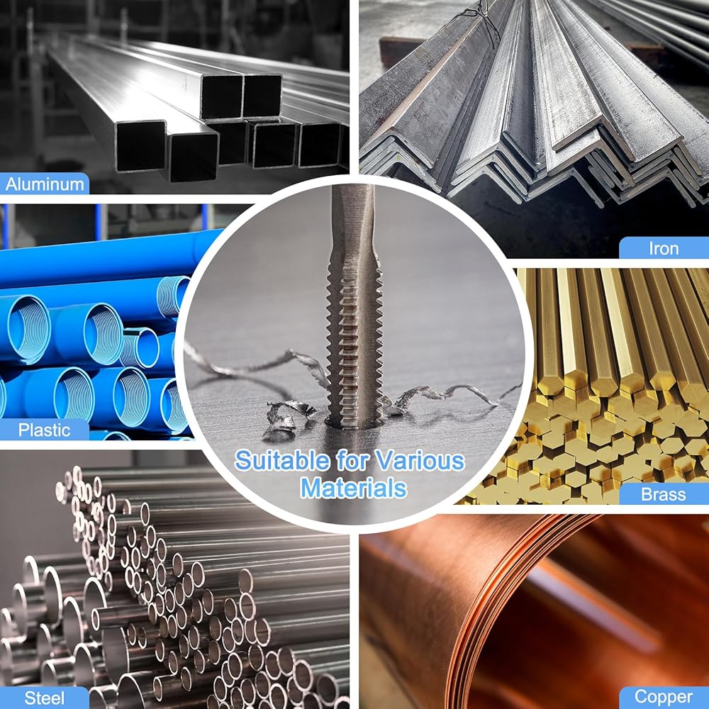 • [Multipurpose Use] - Taps are used to make or repair threads. They are widely used in most metals, such as copper, alloys, steel, cast iron, aluminum and other non-ferrous metals. They can be used with manual equipment or processing consoles