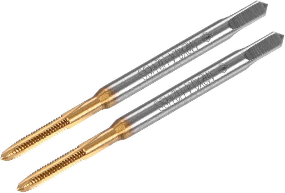 2-pack M2x0.4mm نقرة خيط متري ، HSS Titanium المطلية 44 مم طول مستقيم الناي الفلوت يمين ترابط المسمار المسمار لآلات الحفر/الطحن/أدوات آلة CNC