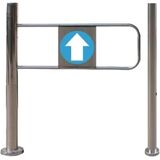 This gate is specifically designed to indicate channel direction and regulate entry and exit, ensuring safe passage for customers and staff alike. Its push door mechanism allows for automatic closing, preventing unauthorized access while maintaining a seamless flow of foot traffic.