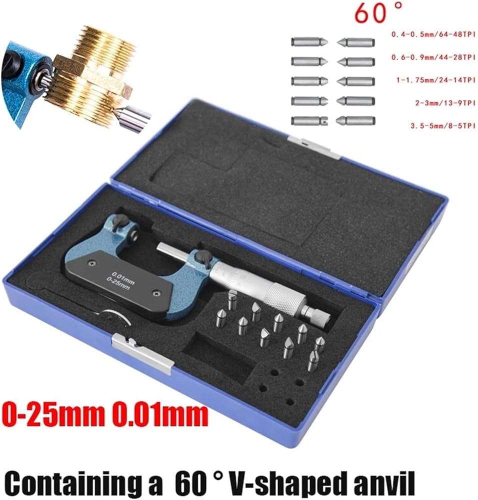 ميكرومتر مؤشر ترابط المسمار 0-25 مم 25-50 مم الصناعي مع السندان 50-75 مم 75-100 مم خارج ميكرومتر 0.01 مم (25-50 مم والسنقان)