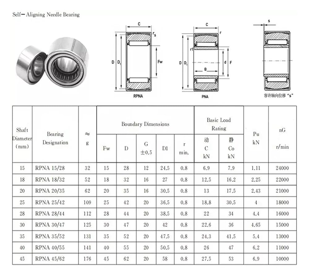 1PCS RPNA15/28 No inner ring 15x28x12MM PNA12/28 Have inner ring 12X28x12mm Aligning Needle Roller Bearings