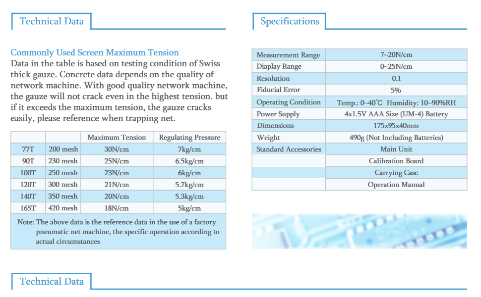 - مناسبة لتوتر الشبكة العامة للأسلاك وقياس التوتر الشبكي الصلب ، وطباعة الشاشة وقياس استنسل الشاشة.