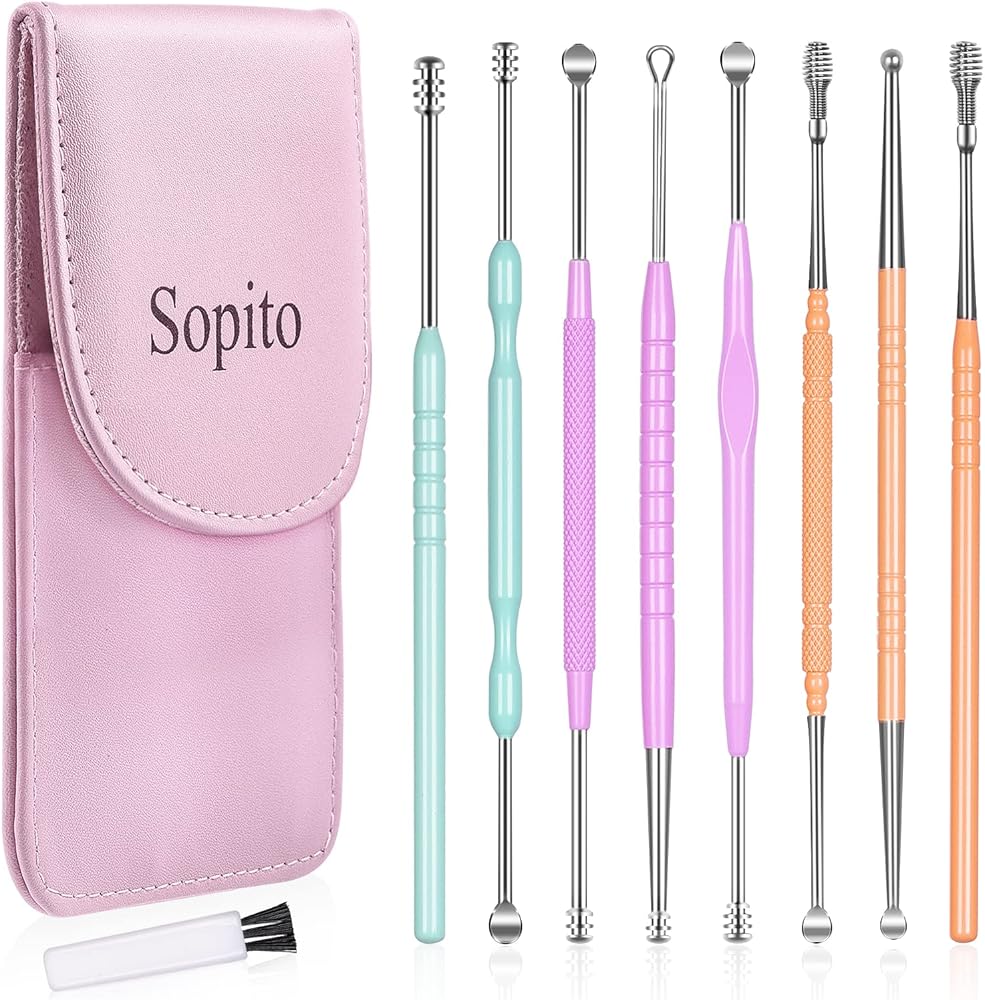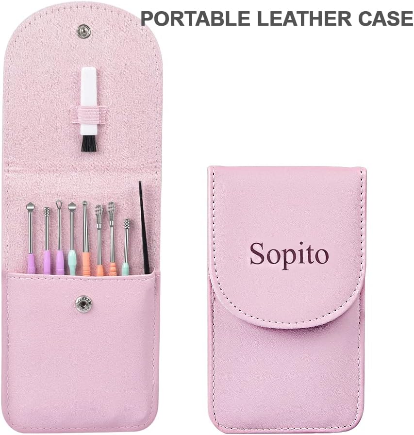 مجموعة إزالة شمع الأذن، مجموعة مغرفة الأذن من سوبيتو، 10 قطع، أدوات خاصة للعائلة مع حقيبة تخزين وفرشاة