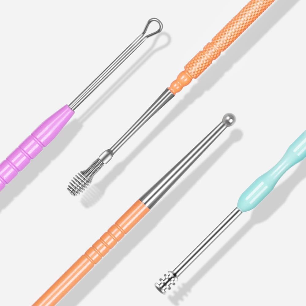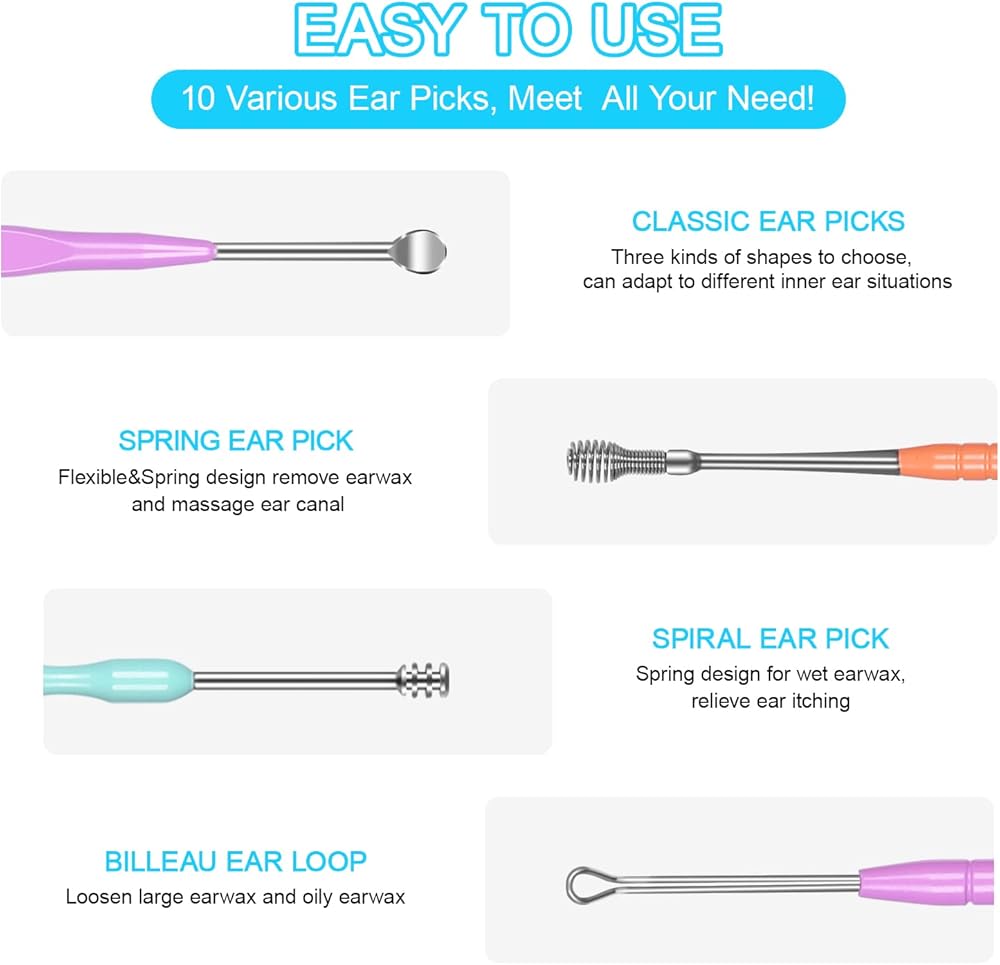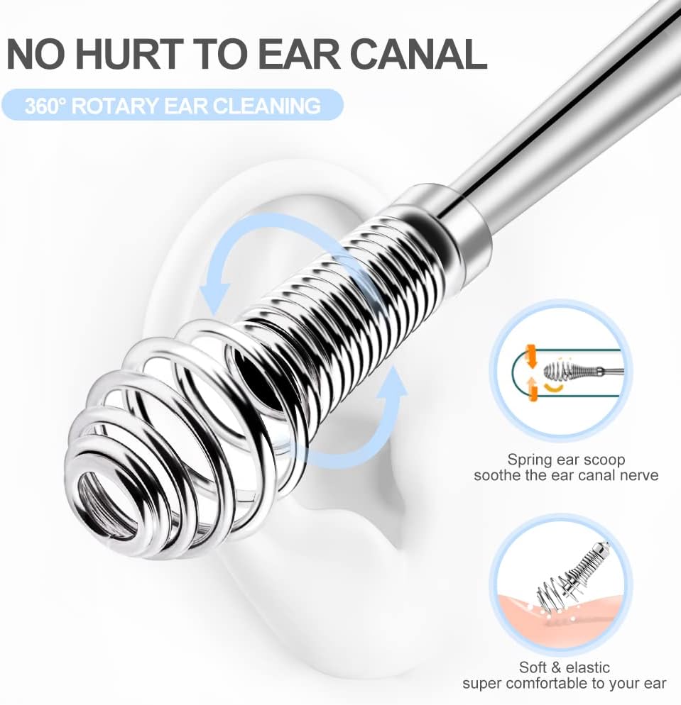 • تصميم مريح: تم تصميم المقبض والأخدود المريحين على كل قطعة أذن من أجل قبضة مضادة للانزلاق، مما يجعل عملية تنظيف الأذن بأكملها آمنة. واجعل تنظيف أذنيك سهلاً وفعالاً.