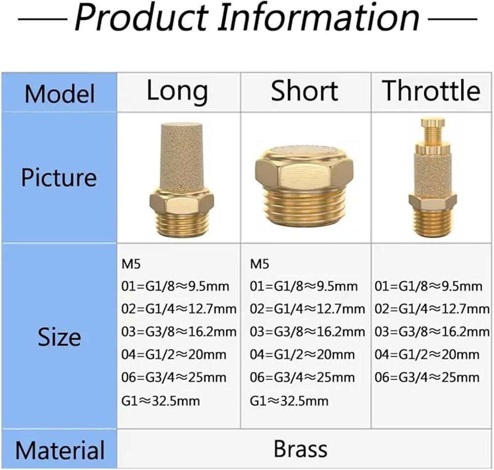 10PCS Pneumatic Exhaust Muffler Silencer M5 1/8 1/4 3/8 1/2 3/4 Male Thread For Air Noise Brass Adjustable Long Short BSL SLM SLL