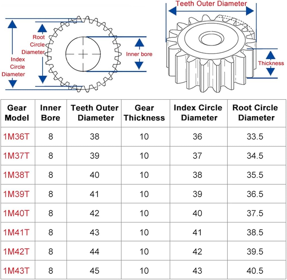التروس الحلزونية الصناعية 1pcs تحفيز التروس 1M36/37/38/39/40/41/42/43T حفرة خشنة 6 مم ترس من الصلب الكربوني العتاد الإجمالي 10 مم (الحجم: 1M36TEETH-Bore 6 مم)
