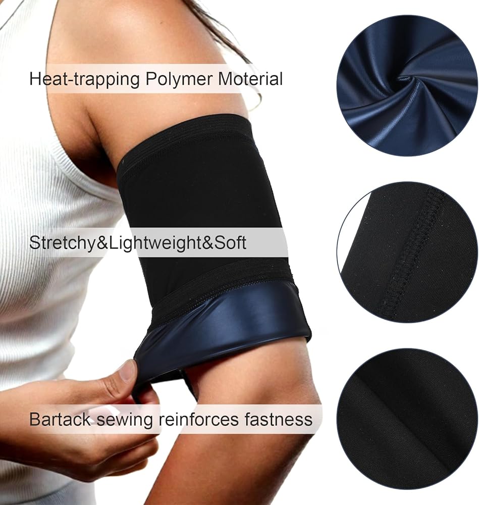 Superior Material: Crafted from polyester and polyurethane material, this arm bands for workout rapidly elevate your arm temperature, boosting circulation and muscle warmth. The arm band helps you achieve a quicker warm-up, enhancing your bicep and tricep performance. By promoting sweat, the arm trimmers for flabby arms aid in burning excess calories and toning your arms for a more sculpted look.
