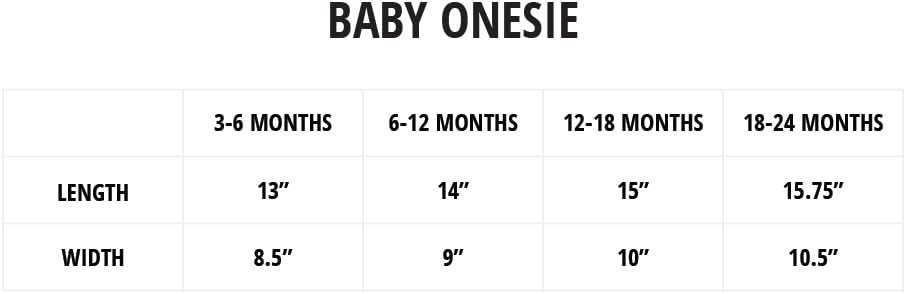 About: Digitally printed onto a 100% Rib Cotton Baby Onesie, combed for softness and comfort (Heather Grey contains 10% Polyester). Neckline designed for easy on-and-off changing. Reinforced yet relaxed sleeve, neck, and leg openings.