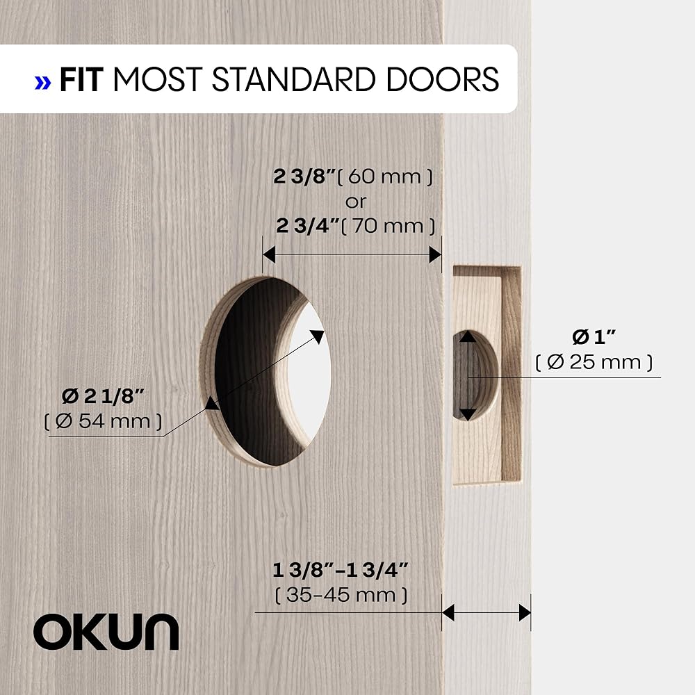 - التوافق: يناسب الأبواب السكنية القياسية 1 3/8 "إلى 1 3/4" ، مصممة لتباعد المسمار 1 5/8 "مع 2 3/8"