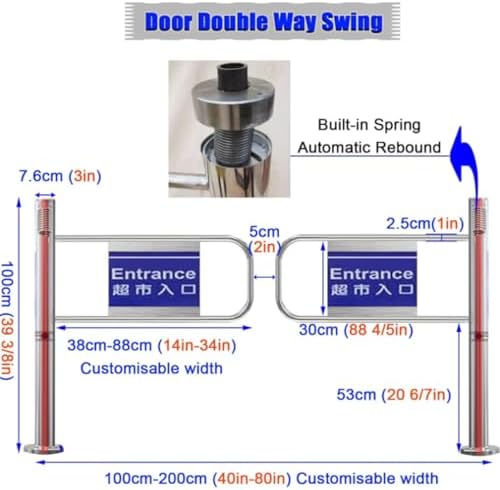 **Key Features:** - **One-Way Access Control:** This swing gate is engineered to facilitate one-way entry, automatically closing after being pushed. It effectively prevents reverse traffic, making it ideal for secured areas. - **Durable Construction:** Built entirely from stainless steel, this door is wear-resistant and rust-proof, ensuring long-lasting performance in high-traffic locations like industrial warehouses and retail environments. - **Automatic Rebound Mechanism:** With a built-in high-elasticity spring, the door opens effortlessly with a gentle push and closes automatically, eliminating the need for electrical power and enhancing convenience. - **Safe & Stable Design:** The door includes a bottom expansion screw for secure installation and an anti-dumping design, providing exceptional stability and load-bearing capacity. - **Customizable Width:** The channel width can be tailored to fit various entry points, accommodating spaces from supermarket entrances to logistics channels. **Ideal Applications:** - Industrial warehouse logistics channels - Supermarket and shopping mall entrances - Public areas such as subway stations and libraries - Security inspection zones requiring one-way traffic **Package Includes:** - One-way revolving door body (with pre-installed spring system) - Installation accessory package (including expansion screws) Please note that display racks and other non-standard accessories are sold separately.