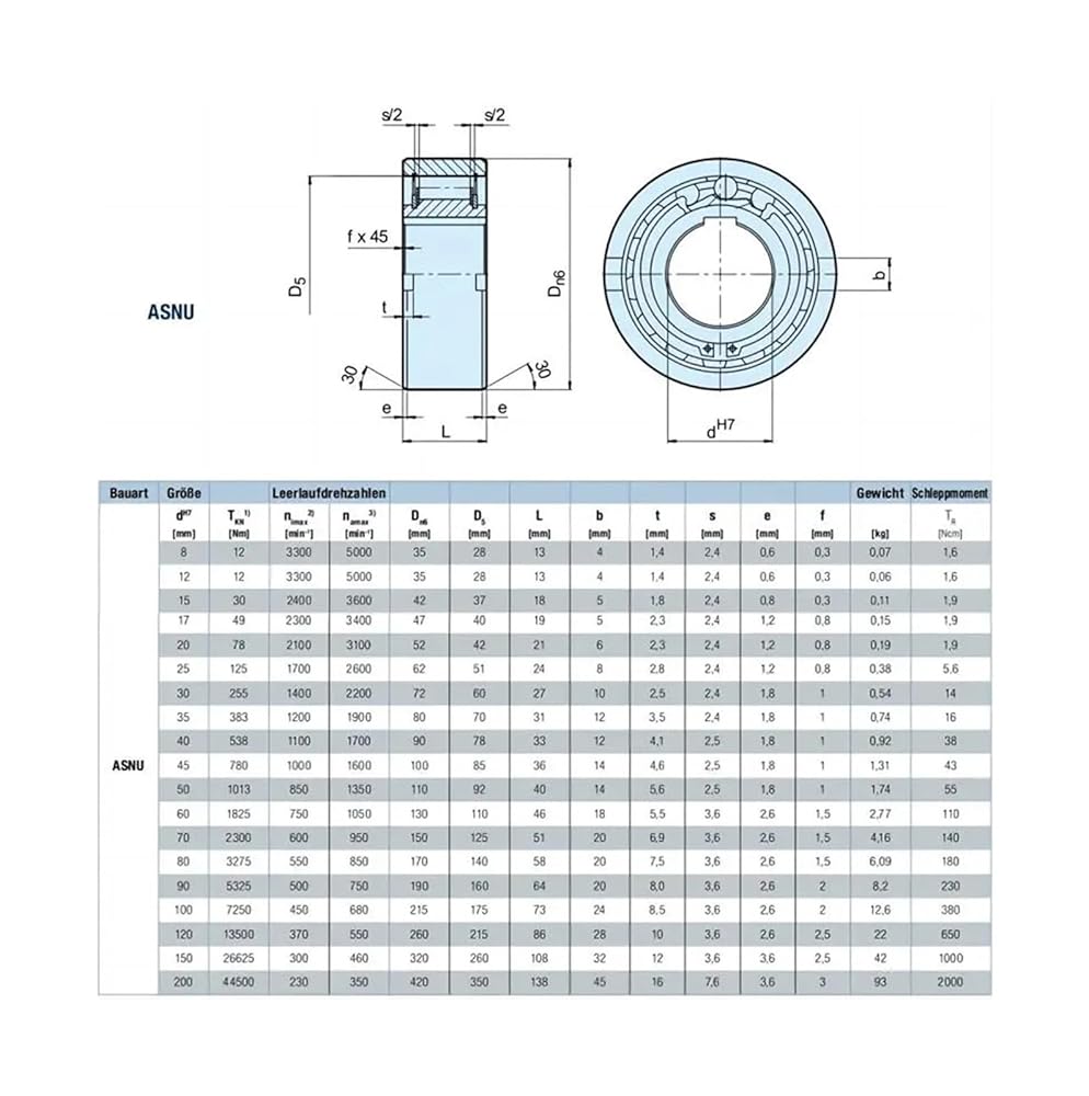 1PCS ASNU15 NFS15 TFS15 15X42X18 MM Unidirectional Bearing Unidirectional Clutch Check Bearing with Keyway