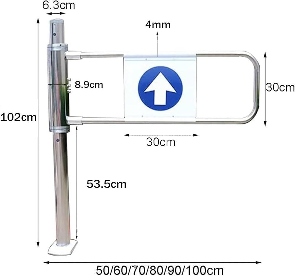 Introducing our versatile Metal Swing Gate, designed to enhance security and accessibility in various settings including supermarkets, shopping malls, warehouses, and more. This industrial swing gate offers a robust solution for managing pedestrian traffic while ensuring safety and convenience. Crafted from high-quality stainless steel, our swing gate boasts a sleek silver finish that complements any environment. With adjustable lengths of 50 to 100 cm and a height of 102 cm, it fits seamlessly into diverse spaces, providing an effective barrier while allowing easy passage. The manual closing feature ensures that the gate automatically shuts after use, making it ideal for busy areas where hands-free operation is essential. Installation is straightforward with our drilling installation method, making it suitable for various applications such as amusement parks, pharmacies, and construction sites. The one-way design helps to streamline foot traffic, enhancing safety in busy locations like parking lots and work areas. Our Metal Swing Gate is not an induction door; instead, it operates manually—simply push to open and let it close behind you. This adds an element of simplicity and reliability to your access control needs. Plus, if you require a shorter swing arm, customization is easy to accommodate your specific requirements. Invest in our Metal Swing Gate for a secure and efficient solution that meets your access needs while maintaining a professional appearance. Ideal for a wide range of applications, it provides peace of mind and enhances the overall experience for both customers and employees.