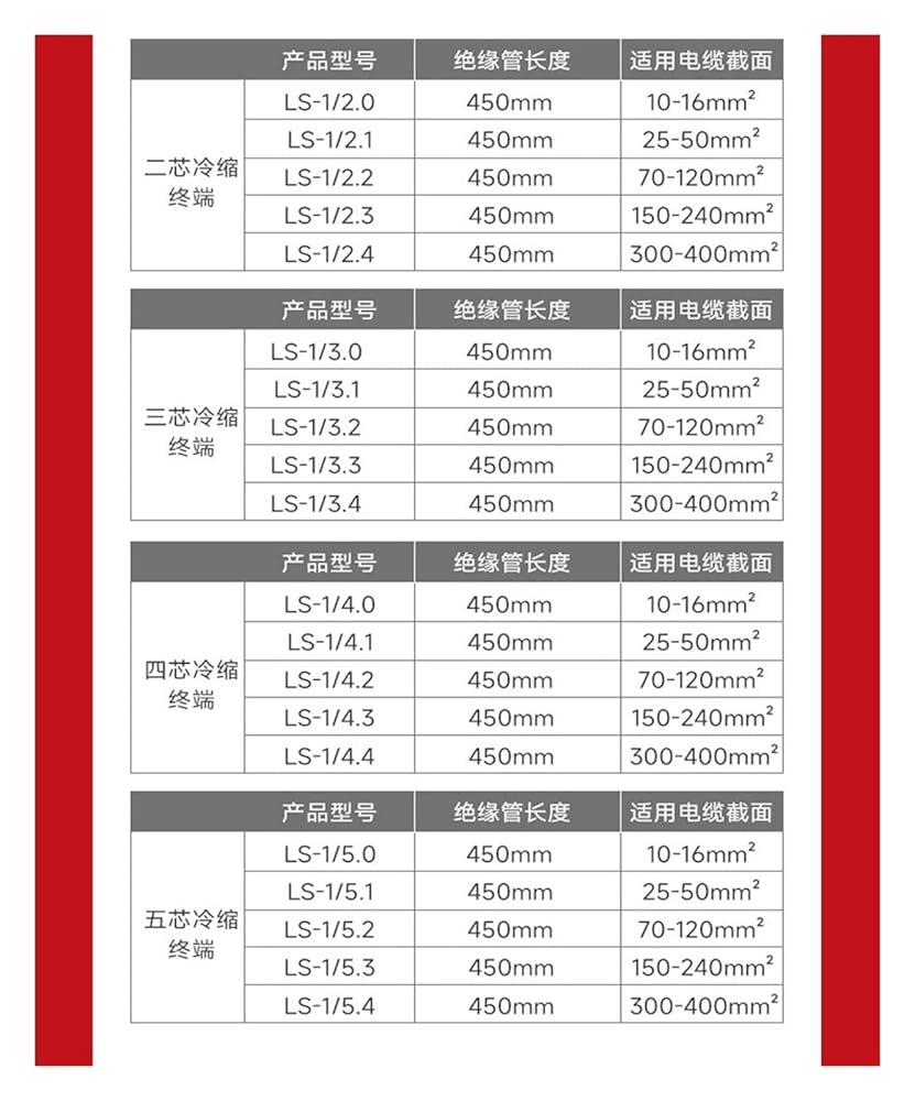 Model: 1KV cold shrink insulation tube LSG1-3#-450mm