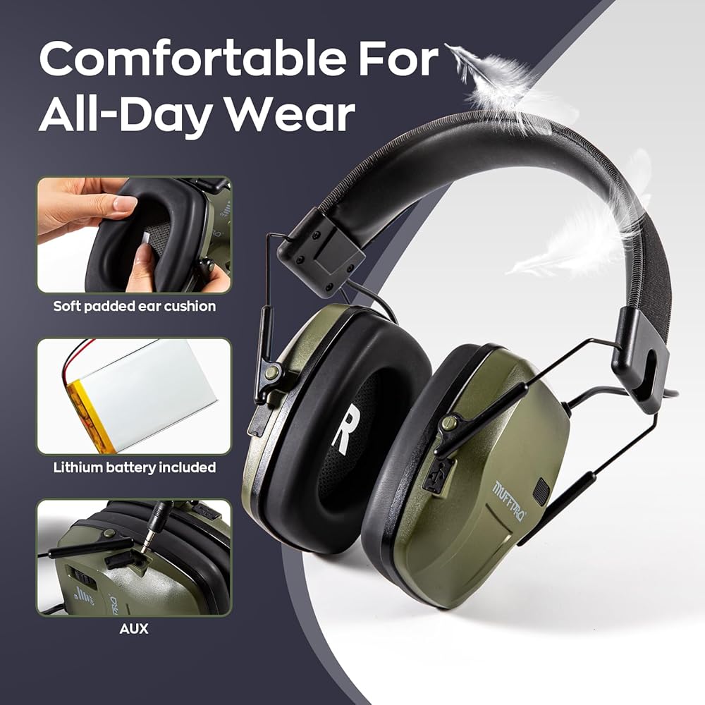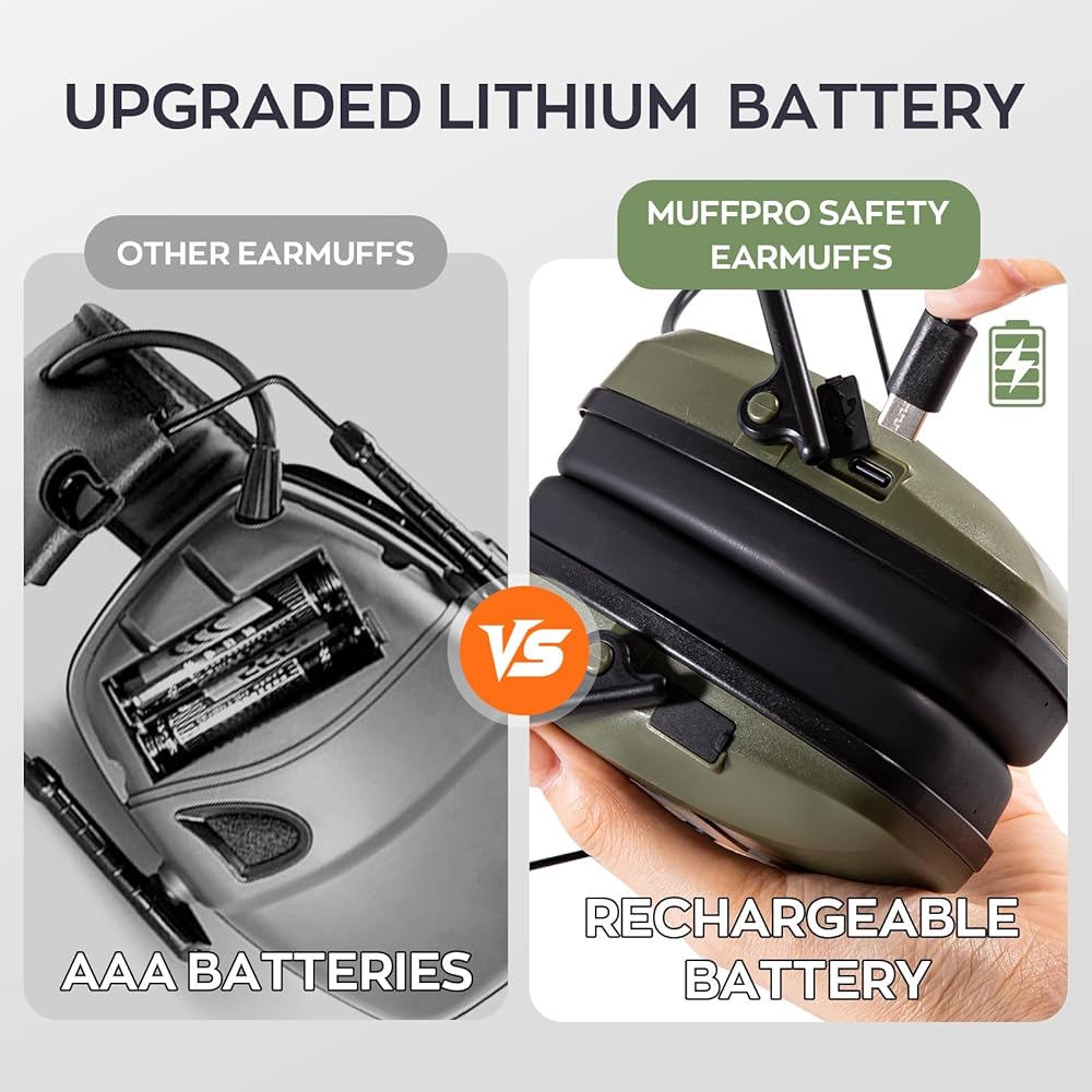 【أغطية أذن قابلة لإعادة الشحن】 Muffpro حماية السمع أغطية أذن مجهزة لبطارية ليثيوم 800 مللي أمبير في الساعة ، وقت الشحن أقل من 2.5 ساعة مع الحد الأقصى لعمر البطارية 47 ساعة.