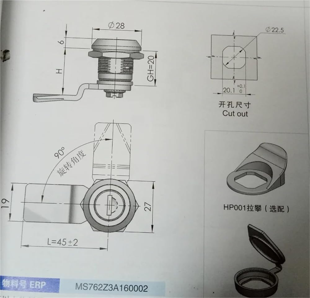 Cylinder Cabinet Lock Cam Locks For Distribution Box Industrial 1Pcs