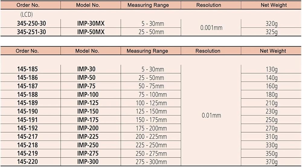 Inside Micrometers145-185 5-30mm 145-186 25-50mm 145-187 50-75mm 145-188 75-100mm 145-189 100-125mm Caliper Type