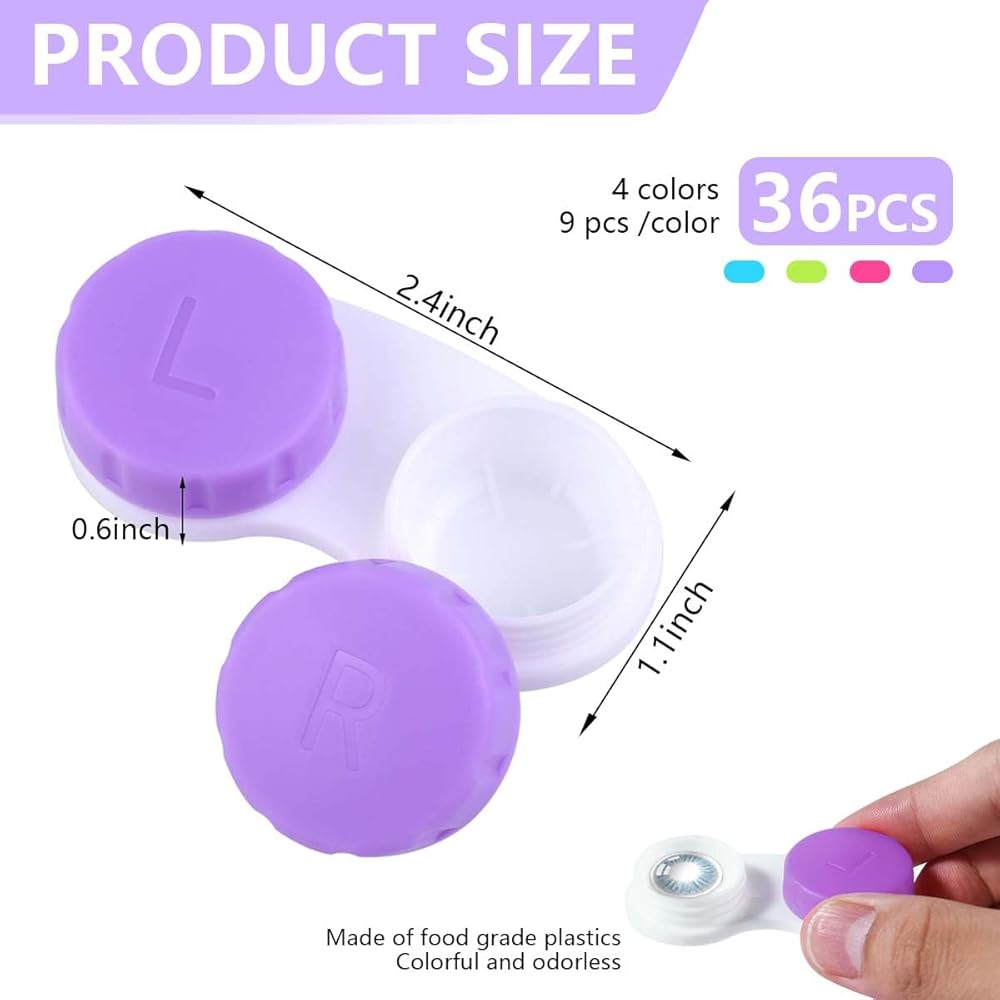 36 عبوة من KISEER حافظة عدسات لاصقة ملونة لطيفة وحامل صندوق كبير مجموعة تخزين نقع (4 ألوان)