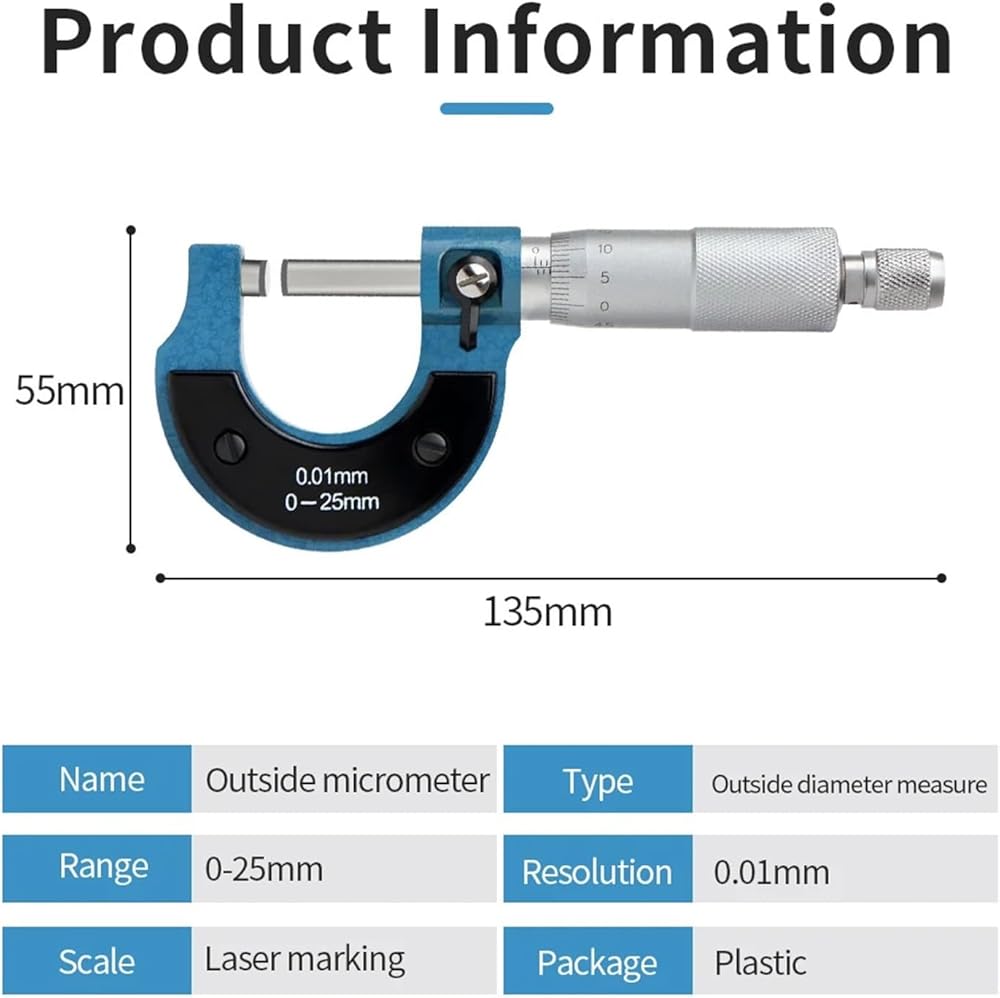0-25mm Micrometer Tool Outside Micrometer 0.01mm Precise Gauge Micrometer Caliper Tools Measurement