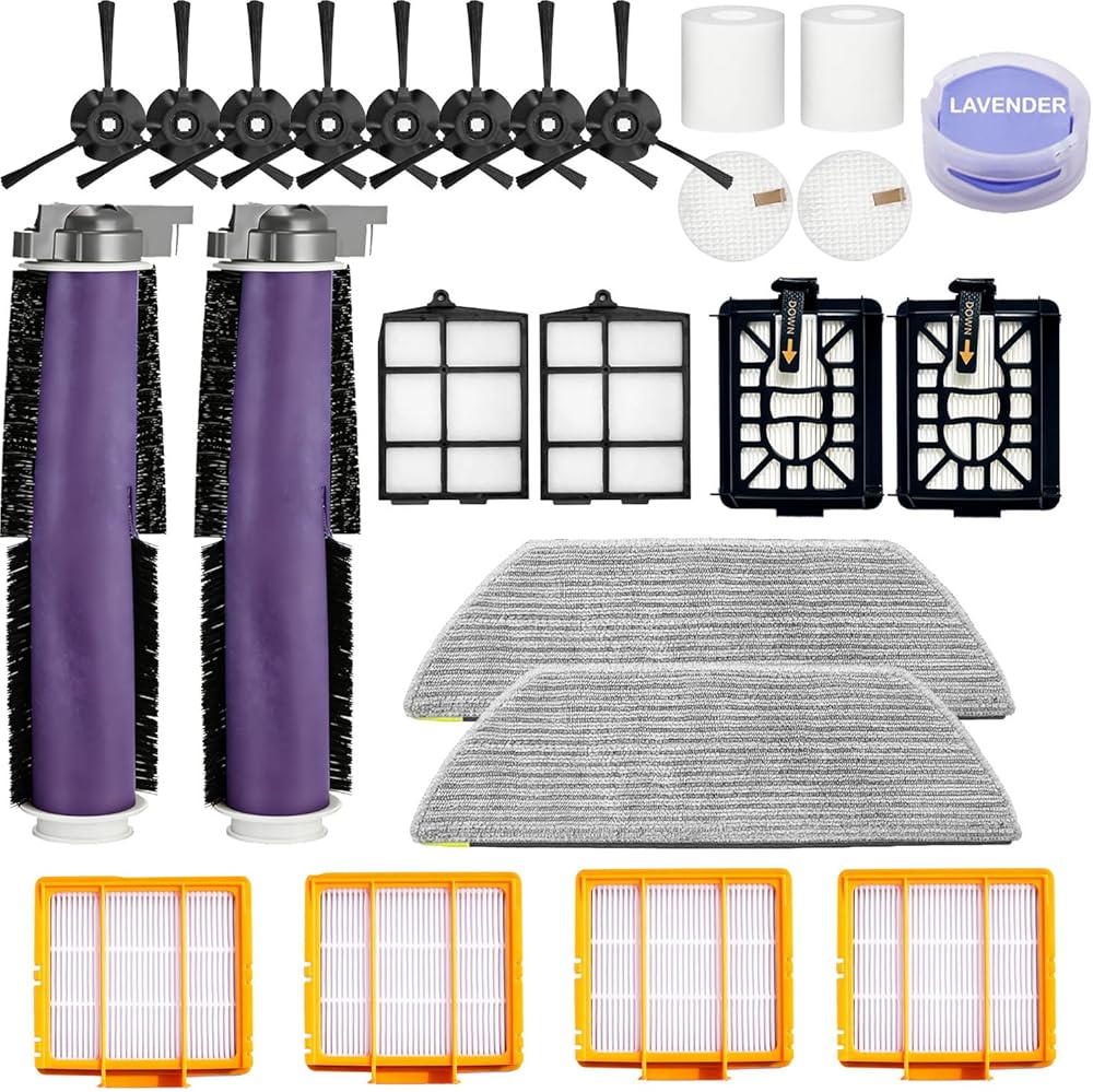 تشمل الحزمة-فرشاة أسطوانة 2 × ذاتية التنظيف ، مرشح 4 × HEPA ، فرشاة جانبية 8 × ، رغوة 2 × ما قبل الحمل ، مرشح أساسي 2 × 2x المرشح الأساسي 1 2x MOP PADS ODOR
