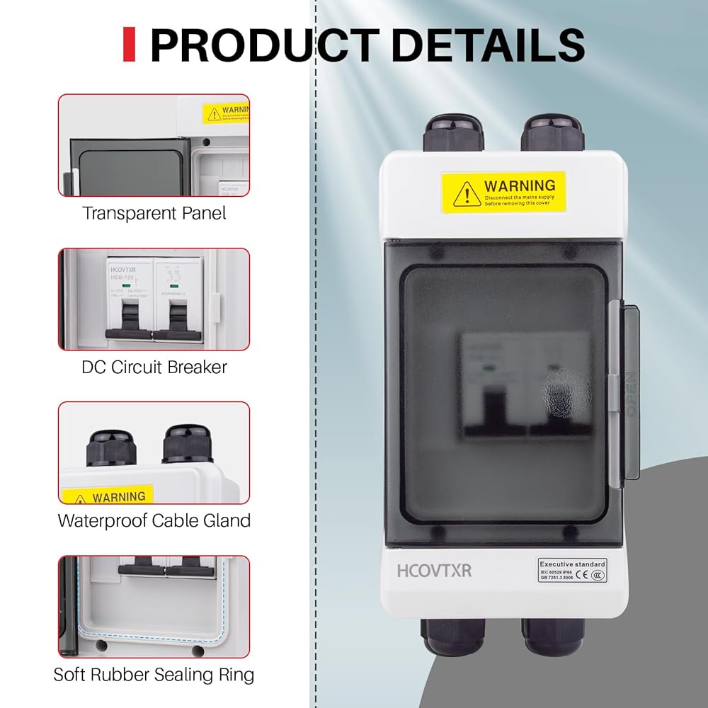 التثبيت السهل: تتيح الموصلات المقاومة للماء وحاوية السكك الحديدية DIN تركيب DIY السريع ، متوافق مع كابلات PV 9-14 مم مربع (6-2 AWG)
