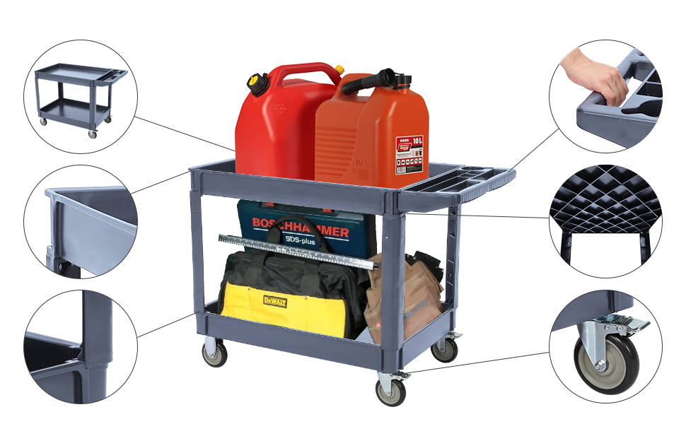 🎁perfect لأثقل الأحمال - هذه عربة الخدمة مع عجلات مثالية لنقل المواد واللوازم والأحمال الثقيلة في أي بيئة تقريبًا. توفر الرغوة الهيكلية متانة أكبر من المواد الأخرى ، مما يوفر 500 رطل من إجمالي قدرة وزن التخزين ، مع 250 جنيه لكل رف.