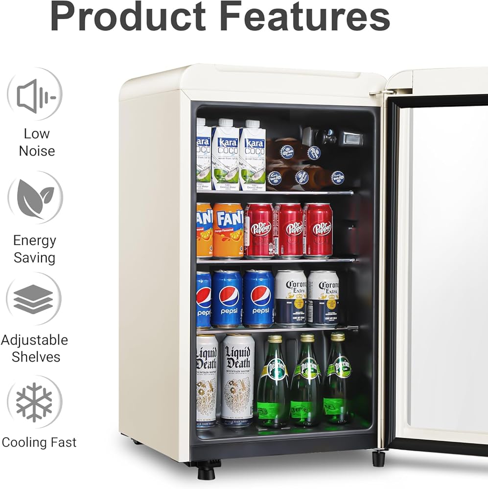• Spacious Storage - With ample shelving space, this cooler can hold a variety of drinks, from sodas and sparkling water to beer and juice, offering organized storage with easy access.