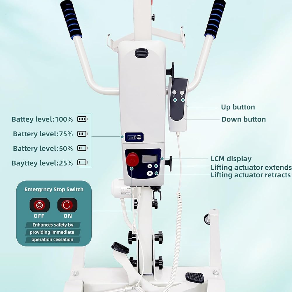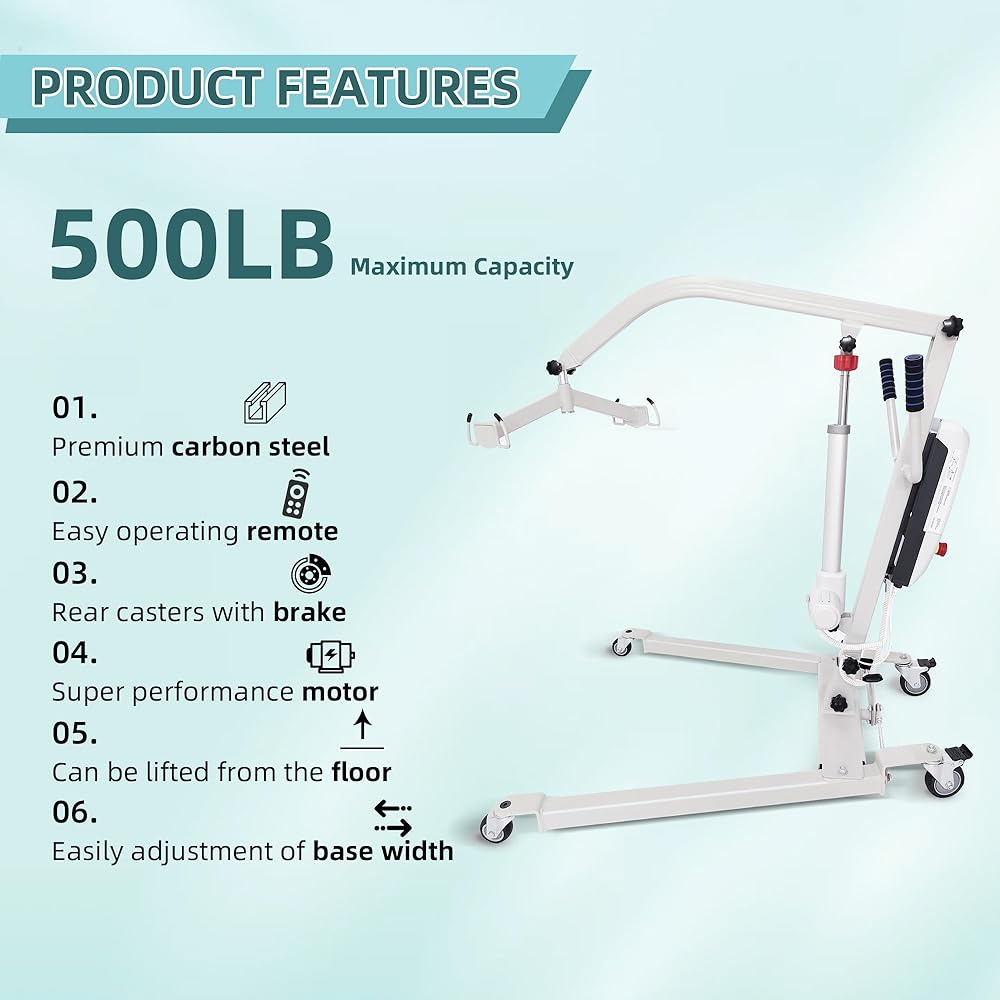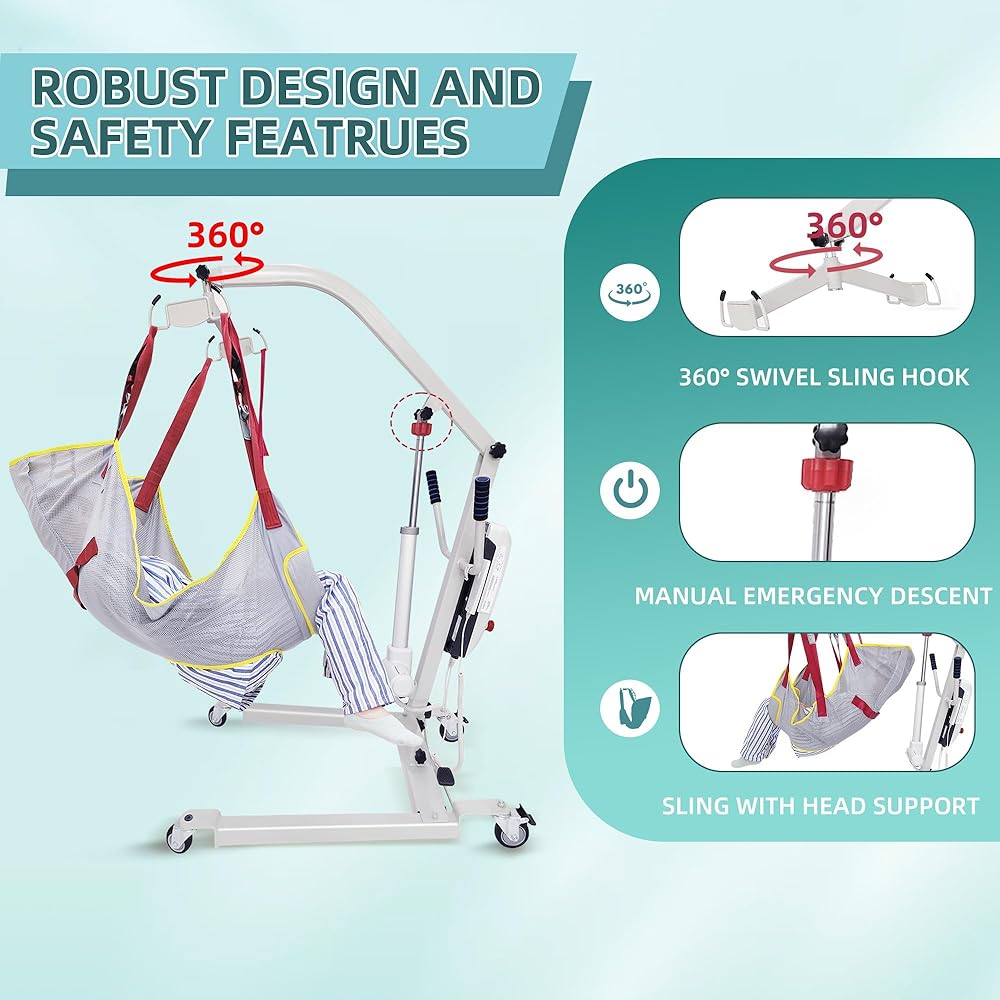 رفع المريض الكهربائي: يحتوي رفع المريض الكهربائي على بنية عالية القوة مصنوعة من مادة فولاذية من سبائك عالية الجودة. يرفع بأمان وبدون عناء ما يصل إلى 500 جنيه