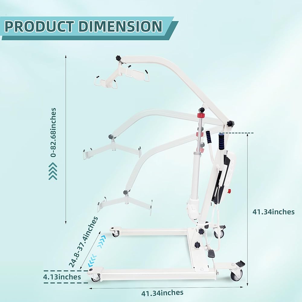 قاعدة قابلة للتعديل: تتراوح قاعدة رافع المريض هذا من الحد الأدنى لعرض 24.8 بوصة إلى أقصى عرض قدره 37.4 بوصة ، مما يجعله متوافقًا مع الكراسي المتحركة المختلفة. يمكن قفل العجلات الخلفية للاستقرار ، مما يجعلها مصعدًا مثاليًا للاستخدام في المنزل