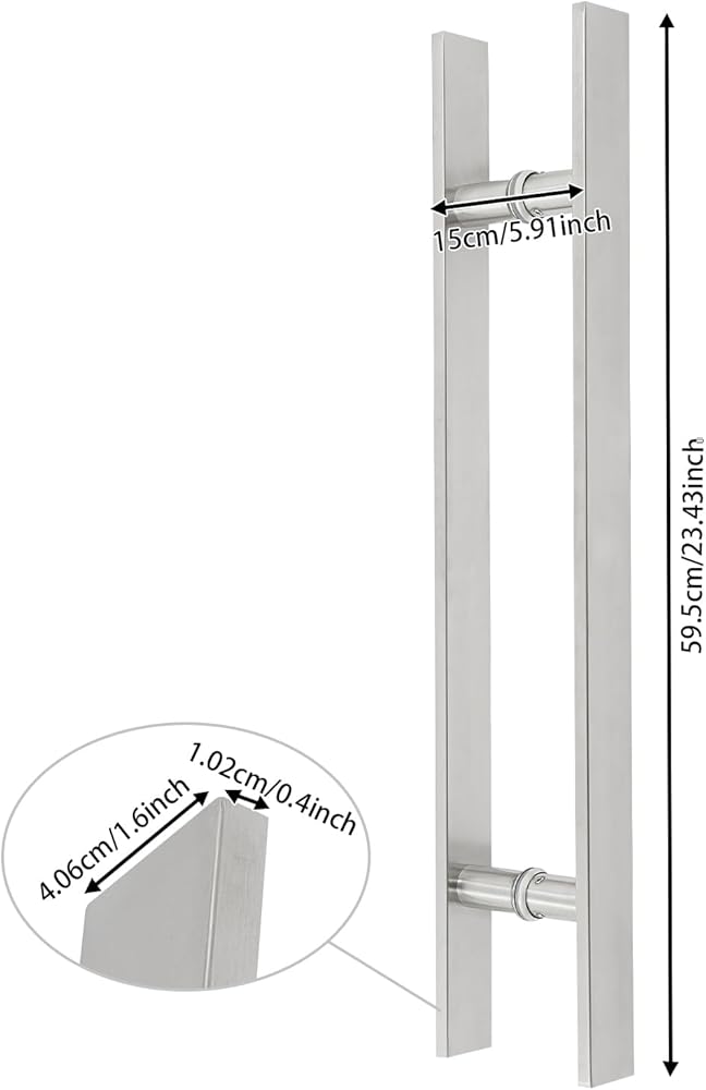 23.43in مقبض باب سحب الضغط ، الفولاذ المقاوم للصدأ مزدوج الوجه h شكل منزلق الباب لمكتب المنزل التجاري (الفضة المصنوعة)