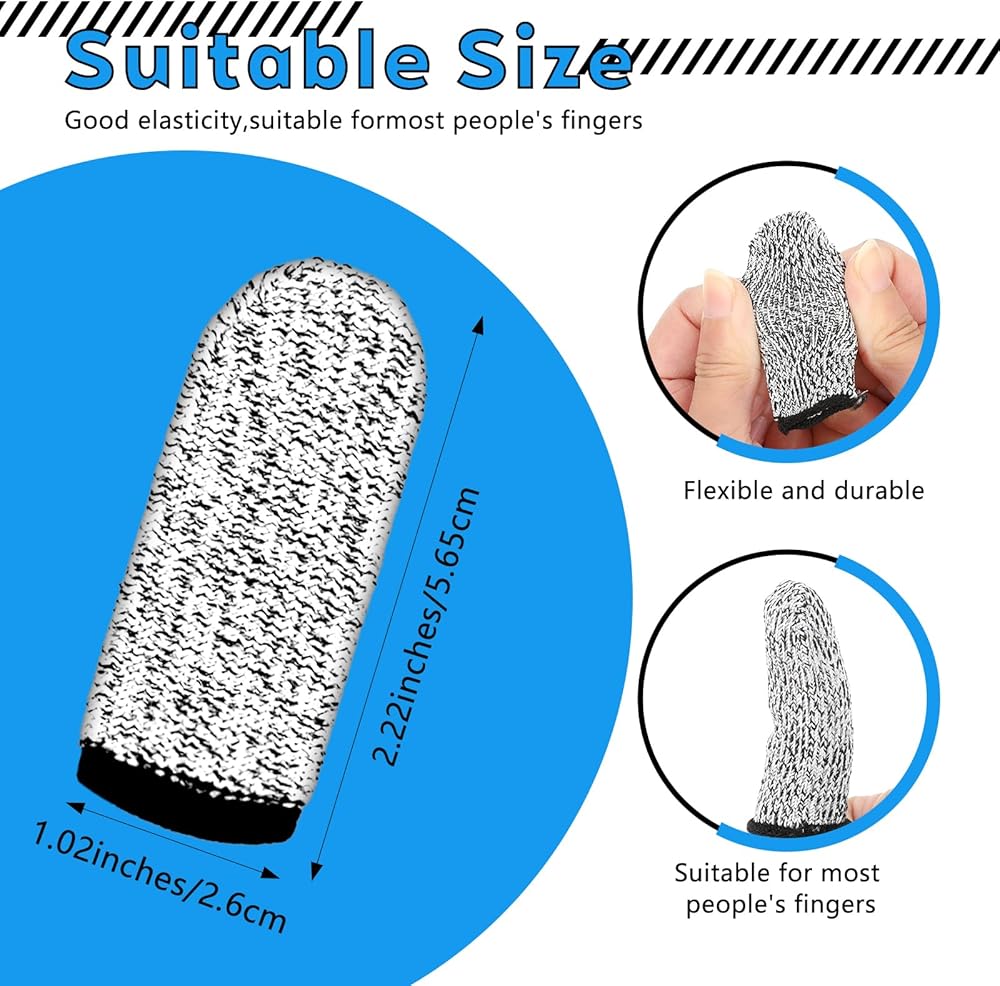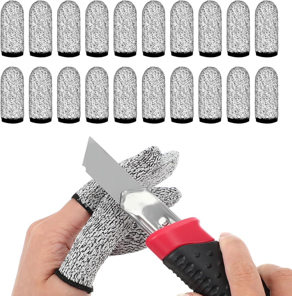 YBEATY 20 Pcs Breathable Cut Resistant Finger Cots Protector Reusable Non Slip Fingertip Thumb Guards Sleeve Gloves for Kitchen Food Cutting Work Garden Sculpture Carving Grinding Stained Glass