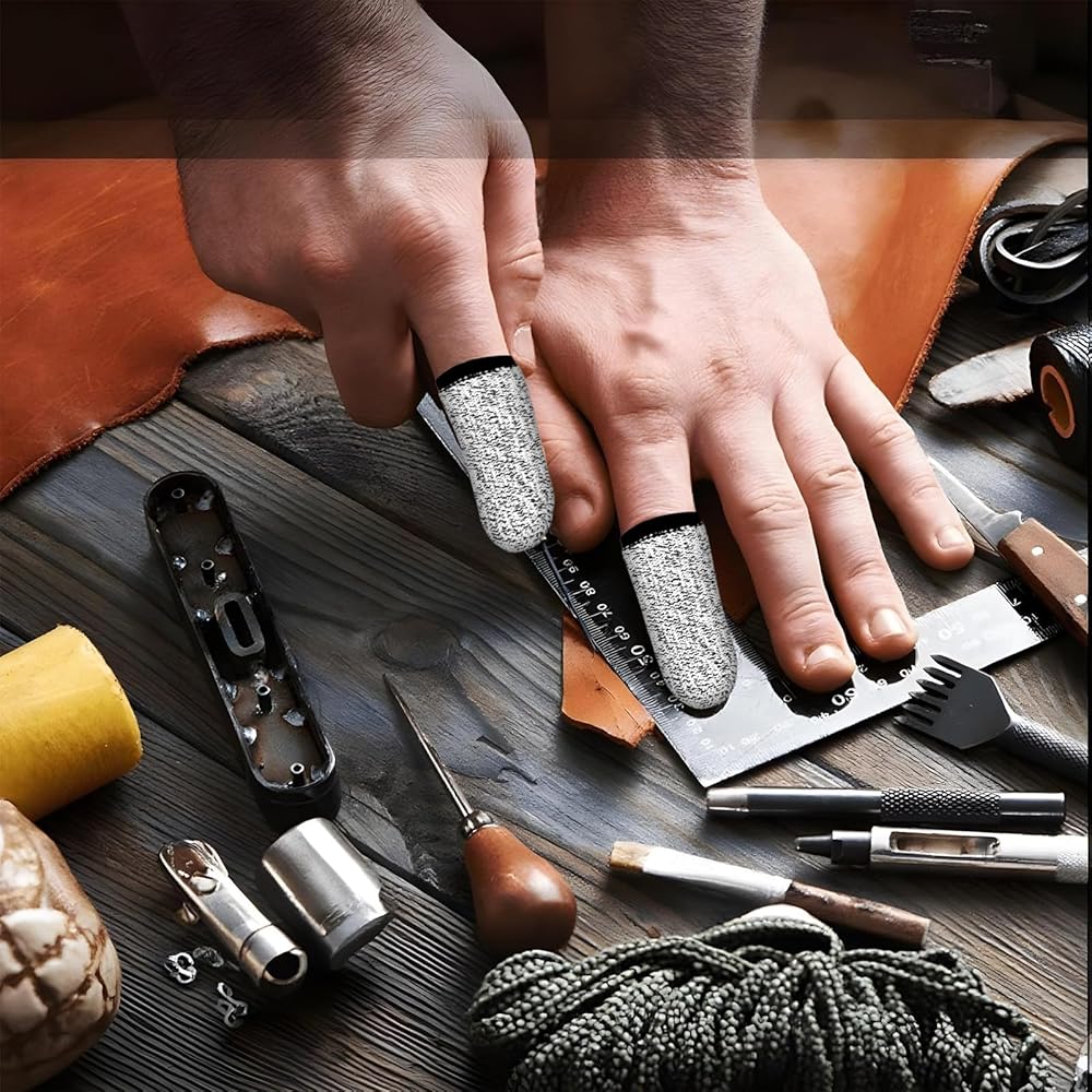 【Widely used】Wood carving gloves for men are great for construction, gardening, kitchen, sculpture, DIY work. Wearing a crochet finger protector can help you reduce cuts or abrasions on your fingers from using sharp tools.